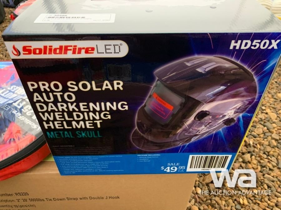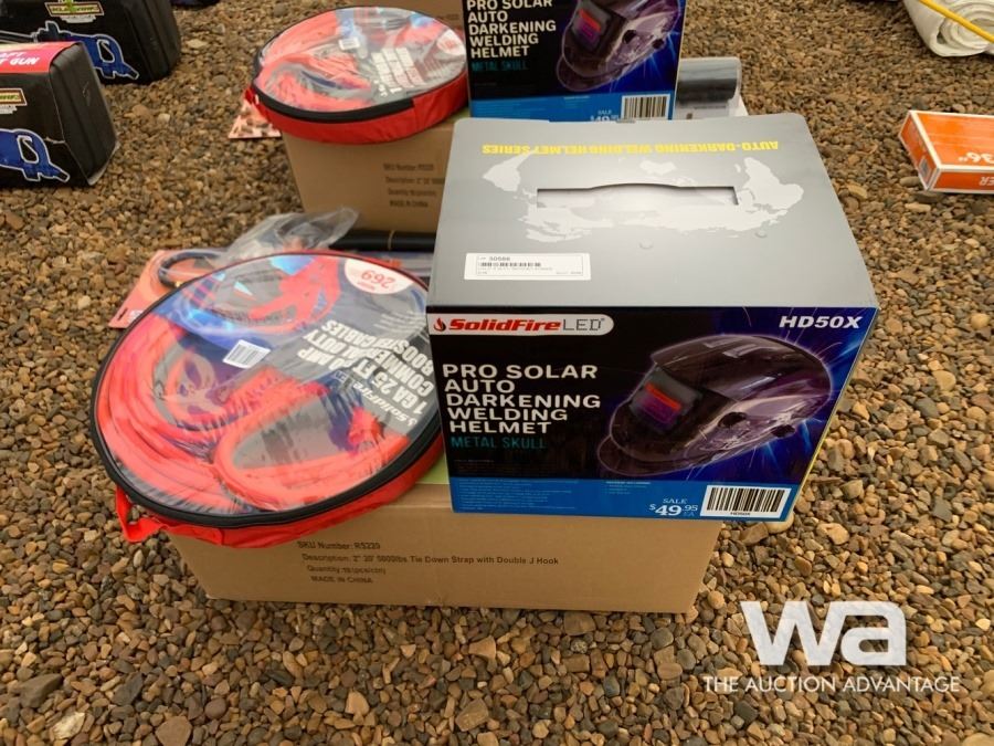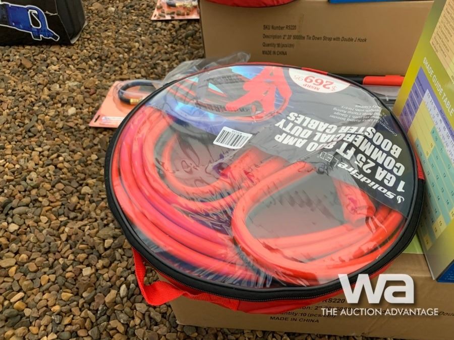 25 FT BOOSTER CABLES, AUTO DARKENING WELDING HELMET, TIGER TORCH, AXE