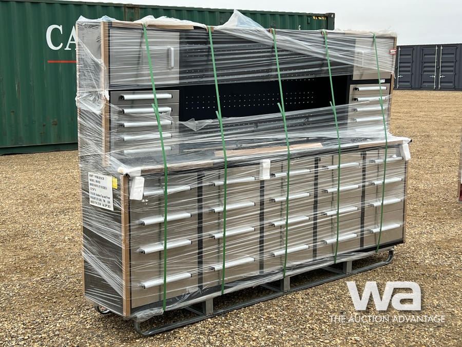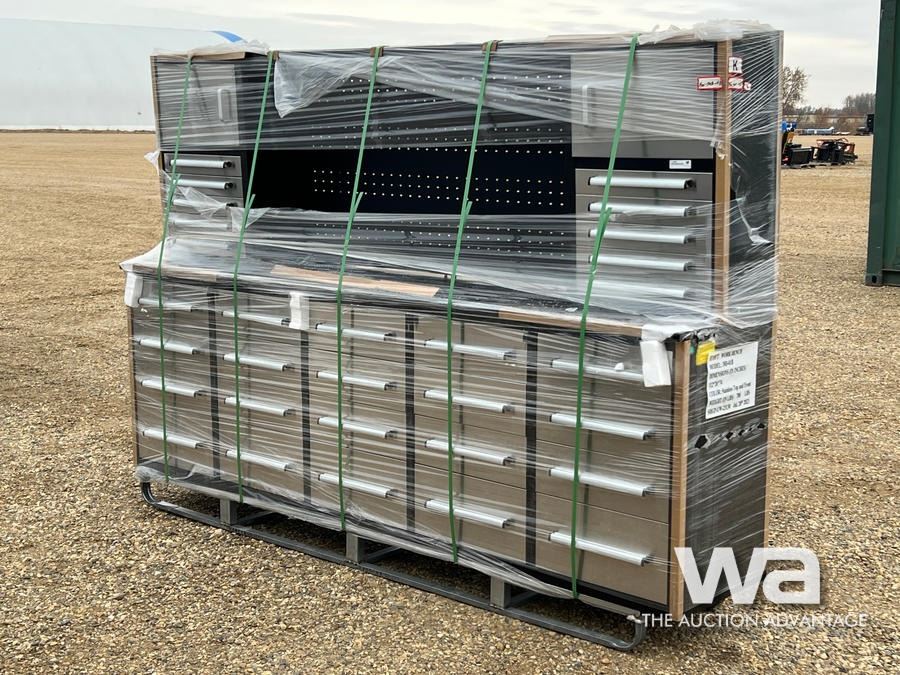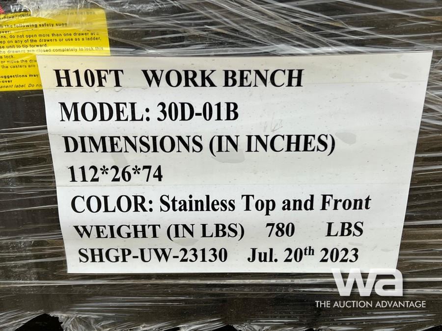 10 FT. STAINLESS 30 DRAWER WORK BENCH