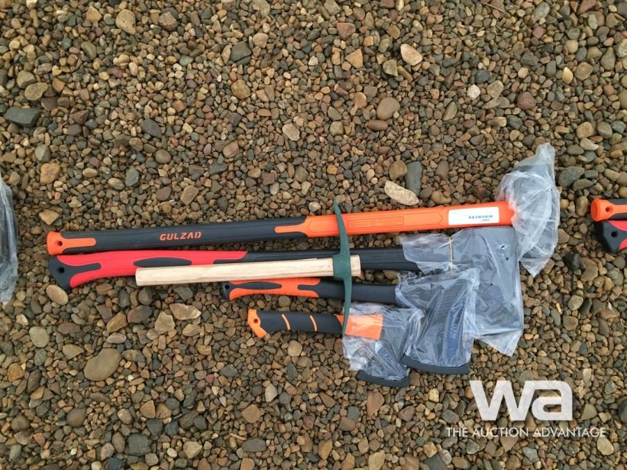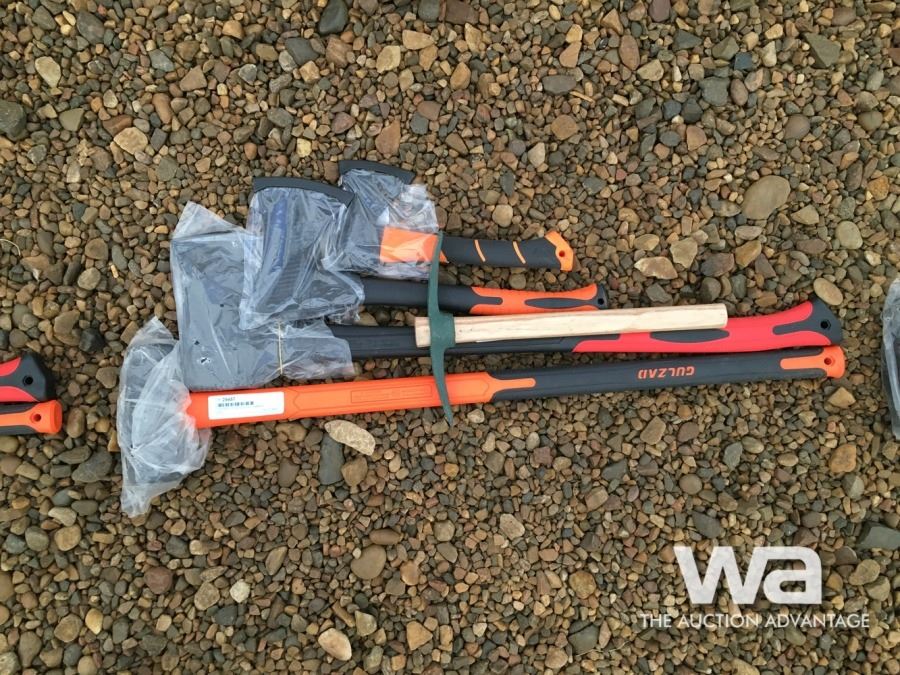32" AXE, 18" HATCHET, 12" HATCHET, MINI PICKAXE,(UNUSED)