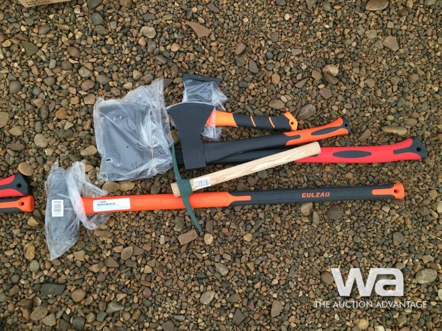 32" AXE, 18" HATCHET, 12" HATCHET, MINI PICKAXE, (UNUSED)