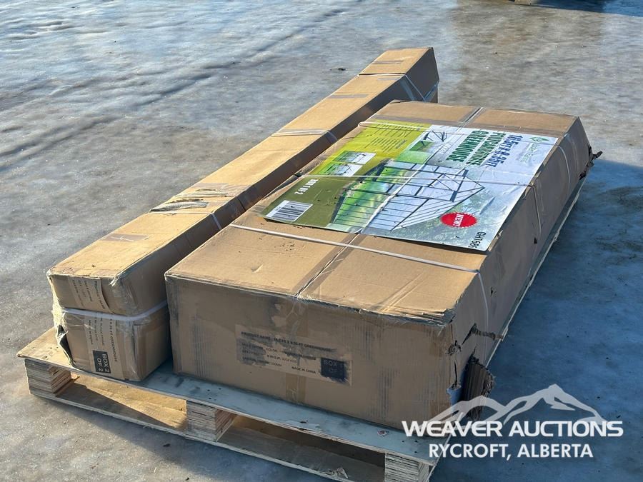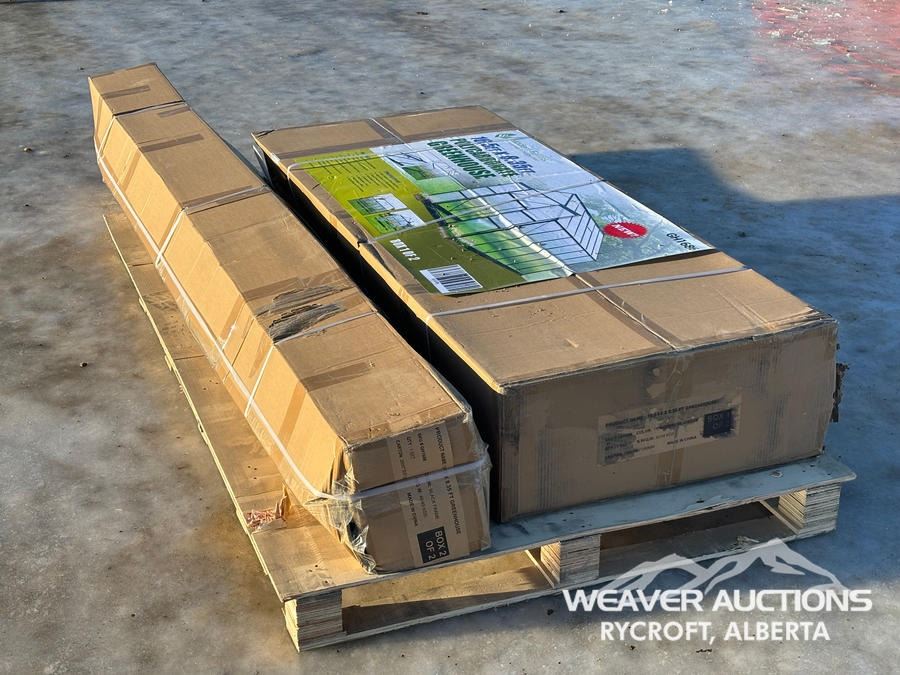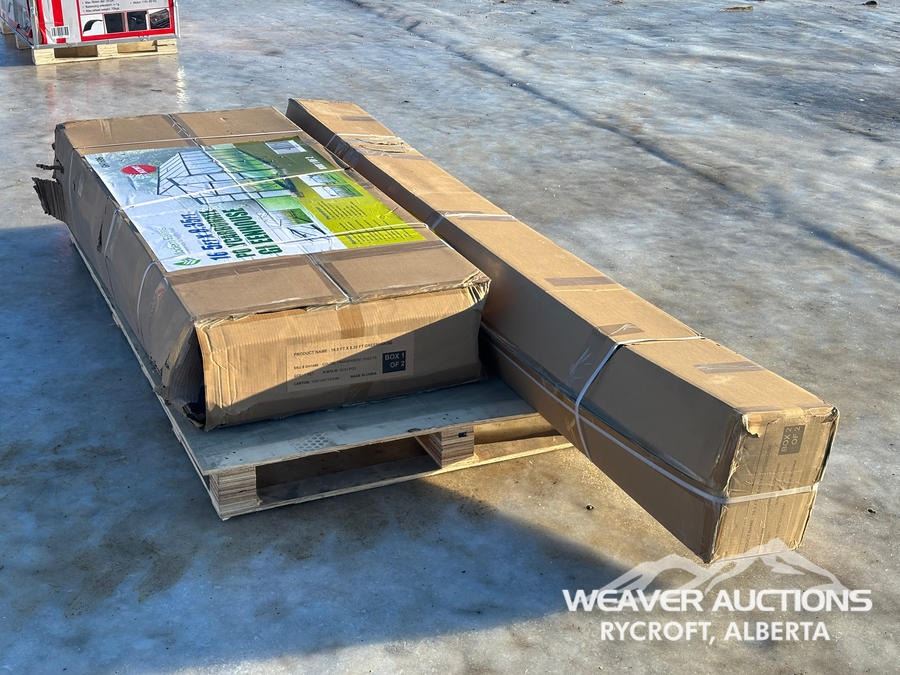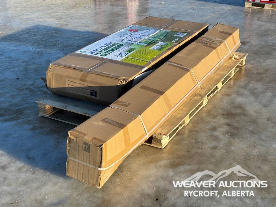 Specifications: *UNUSED, (2) BOXES, 8 FT. PEAK HEIGHT, UV RESISTANT, POWDER COATED ALUMINUM FRAME