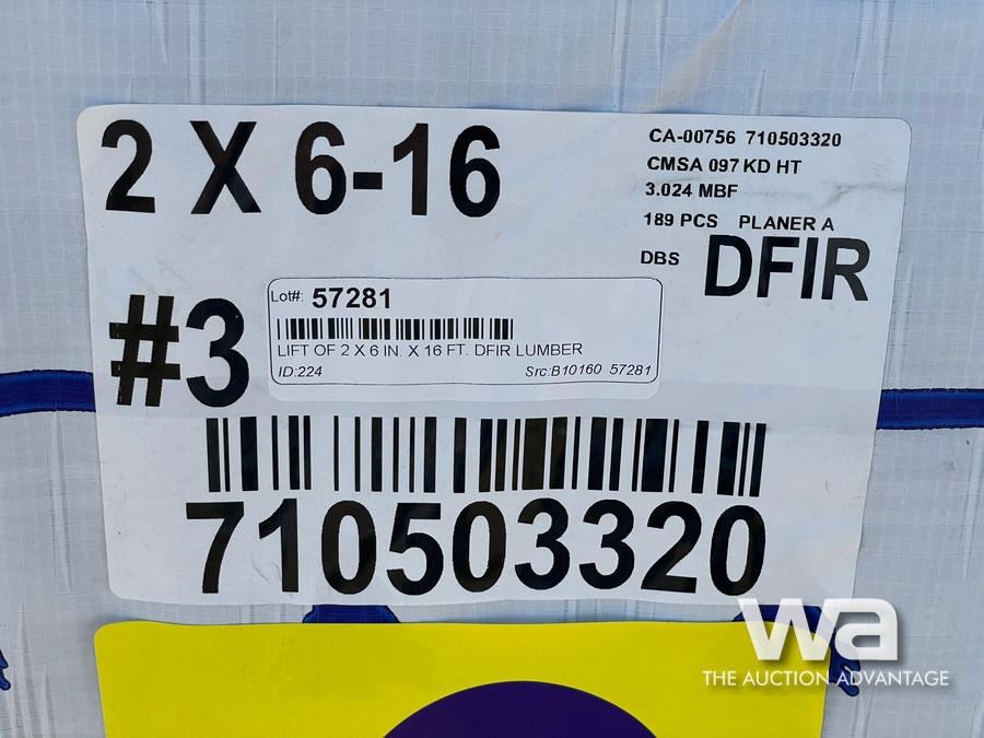 (189) 2 X 6 IN. X 16 FT. DOUGLAS FIR LUMBER