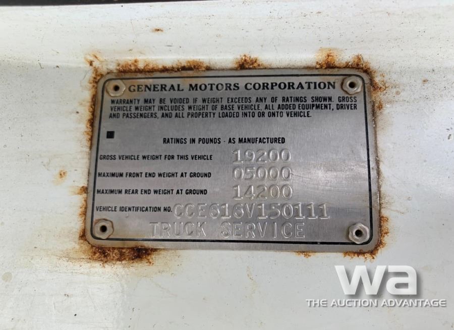 ODOMETER: UNVERIFIABLE, GAS, 5 SPEED, WHITE, 14 FT. STEEL BOX, *NOT RUNNING, VIN:CCE616V150111, *AB REGISTERED *Asset located: 20 KM west of Spirit River, AB on Hwy 49, .8 KM south on RR 82, 2.8 KM west on TWP 784, then 1.2 KM south to #78320-RR83, *BUYER RESPONSIBLE FOR LOAD OUT