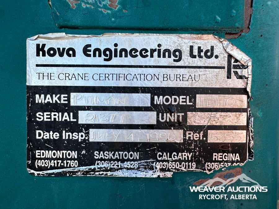 Specifications: RUBBER BLOCK OVER SPRING SUSPENSION, 5,443 KG FRONT, DS381P REAR, 3.90 RATIO, TULSA 12 TON MECHANICAL WINCH, 1996 PITMAN HL170 BOOM