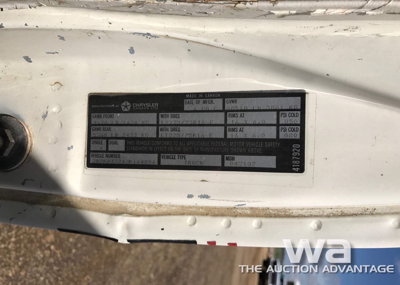WHITE, AUTO, PROPANE, *11,577 KM SHOWING VIN:2B7KB3324JK164806, *AB REGISTERED