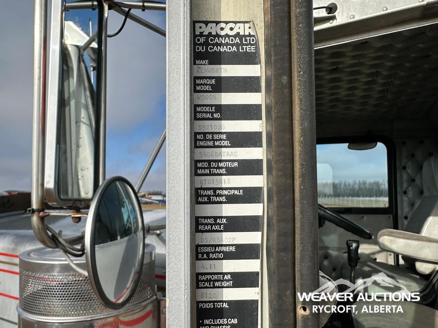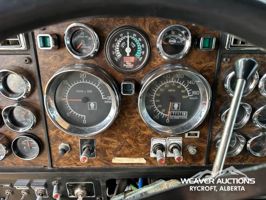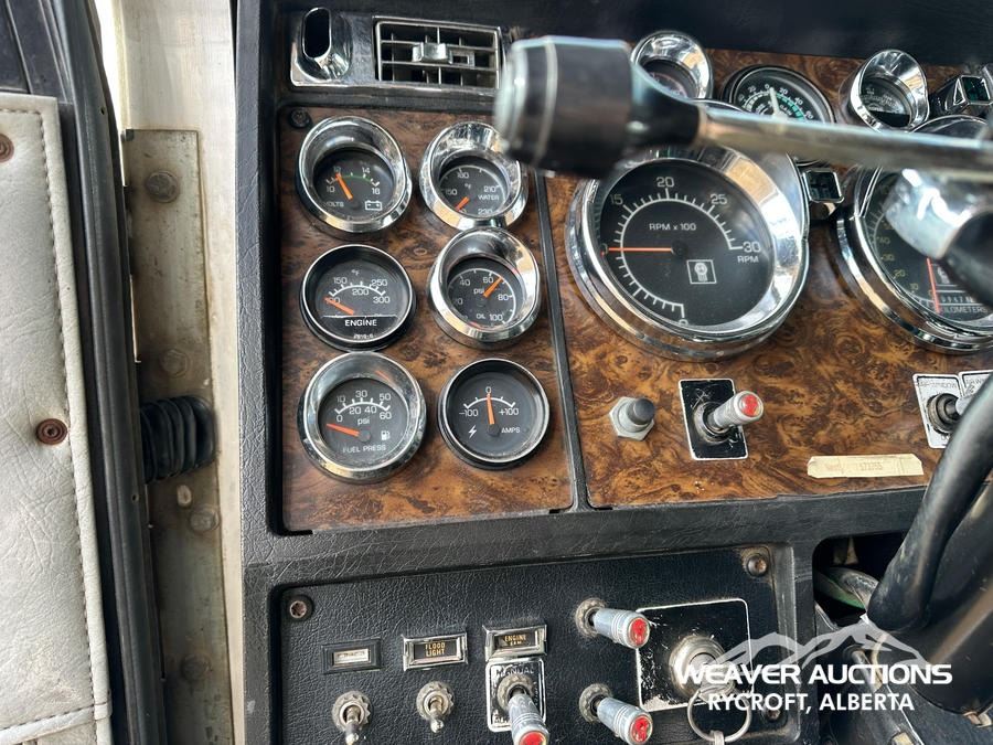 Specifications: CAT 6 CYLINDER DIESEL ENGINE, 1986 US EPA LABEL, MANUAL TRANSMISSION, 5443 KG FRONT AXLE, 18144 KG REARS, 62 IN SLEEPER CAB, 11R24.5, AIR RIDE SUSPENSION, 242 IN WHEELBASE, AIR SLIDING 5TH WHEEL, DUAL FUEL TANKS