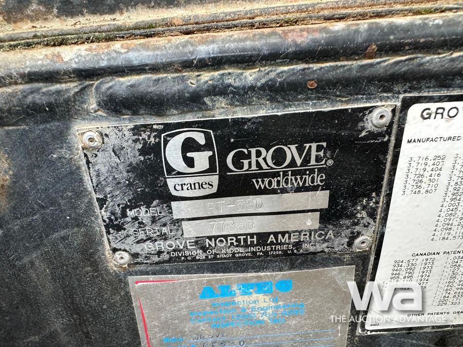 1991 GROVE RT58D 20 TON ROUGH TERRAIN CRANE
