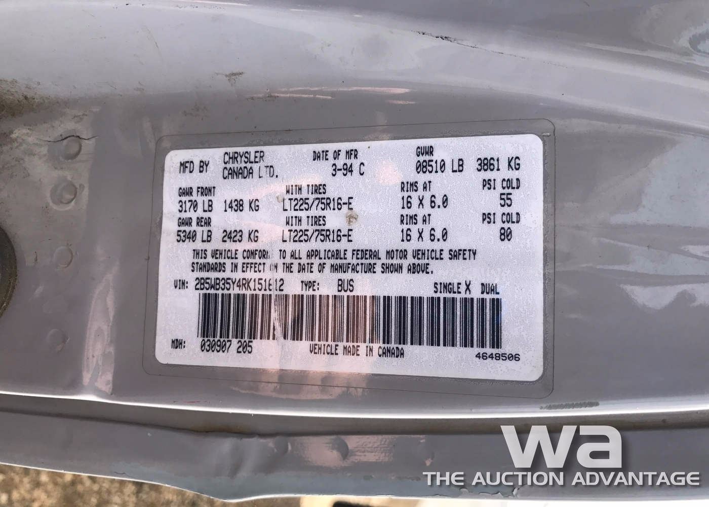 GREY, 12 PASSENGER, 2WD, GAS, AUTO, WHEELCHAIR LIFT, *AB REGISTERED, *AB CVIC EXPIRED: 2017/04/06, VIN:2B5WB35Y4RK151612