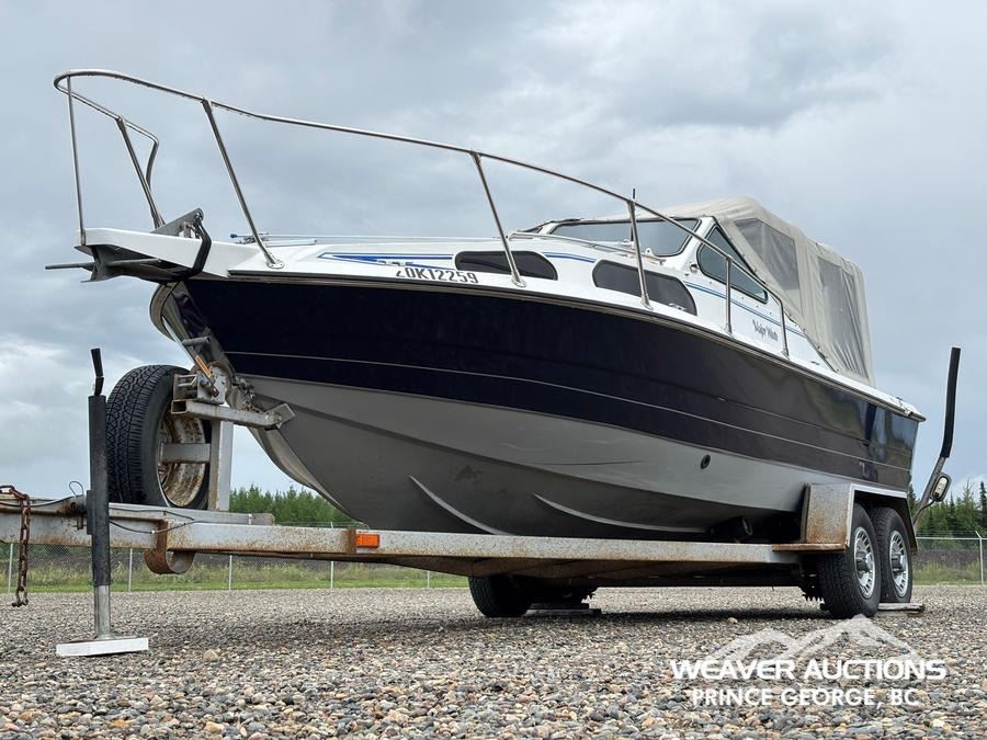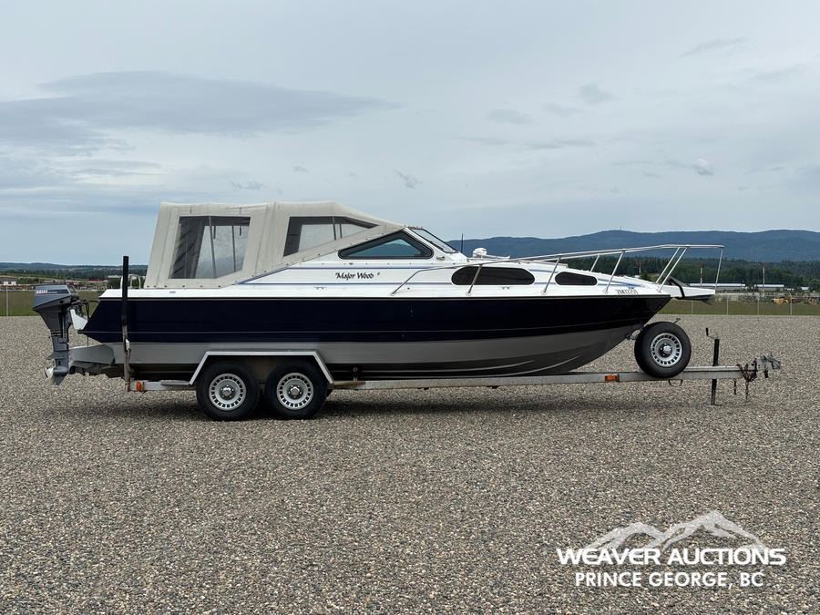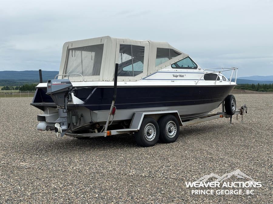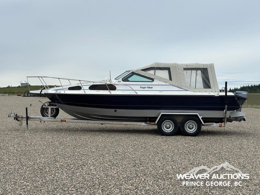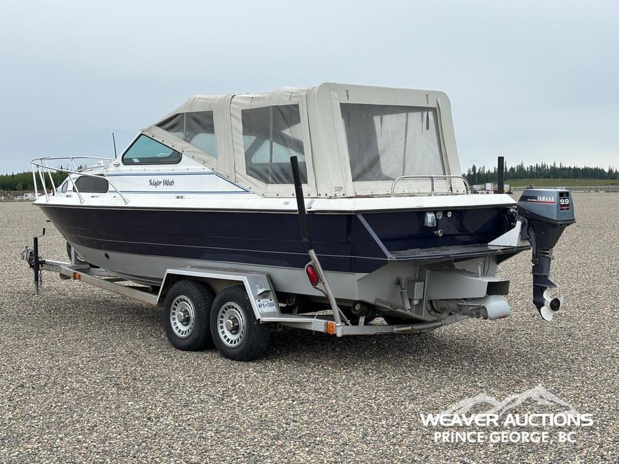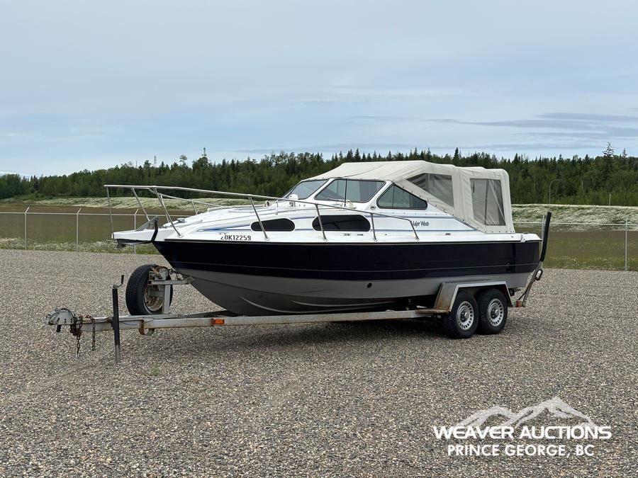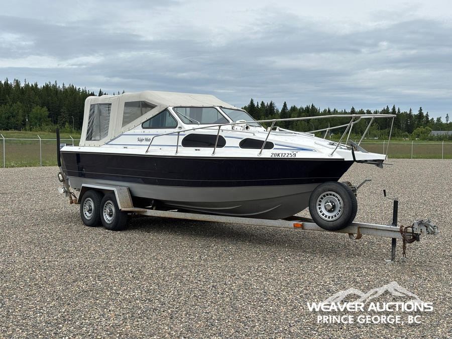 Specifications: HULL #: 20K12259, 219 HOURS, 454 INBOARD ENGINE, 3 STAGE HAMILTON JET PUMP, 9.9 YAMAHA 4-STROKE OUTBOARD MOTOR, C/W T/A BOAT TRAILER, ST225/75R15 TIRES