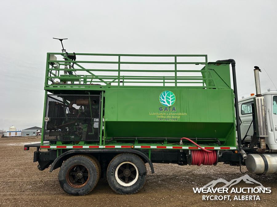 Specifications: ENGINE BRAKE, BEAM SUSPENSION, DIFF LOCK, 5,833 KG FRONT, RT46-160P REAR, 245 IN WB, 2025 HYDROSEEDER, JOHN DEERE ENGINE, METER: 1,298 HRS, HOSE REEL