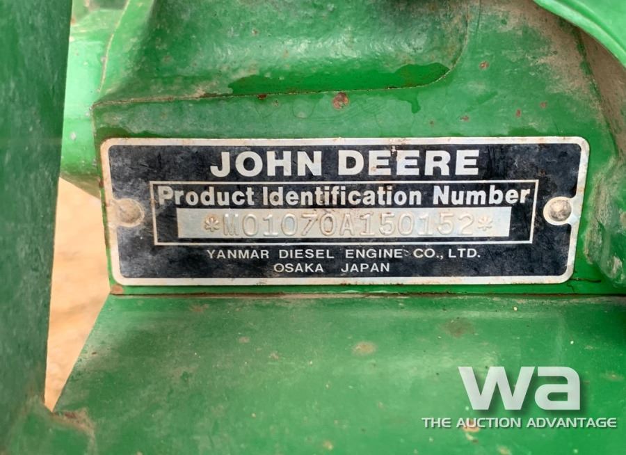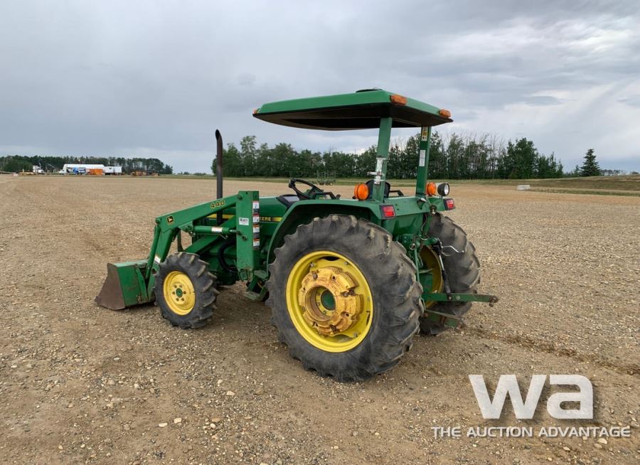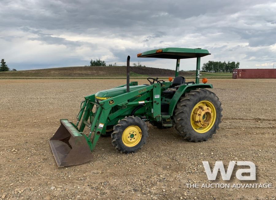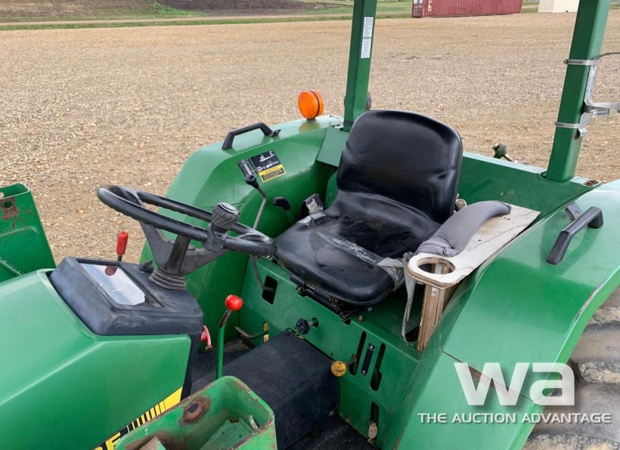 METER: 1,972 HRS DSL, 3PT, PTO, 13.6-38 TIRES, REAR WHEEL WTS, JD 440 FEL, BUCKET SN: A150152 *KEYS:_____*