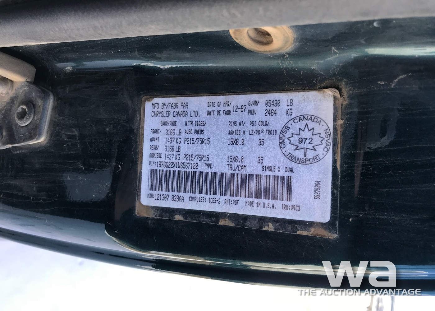 GREEN, E-CAB, 4WD, STANDARD, ODOMETER: 230,918KM, VIN:1B7GG22X1WS567122, *AB REGISTERED