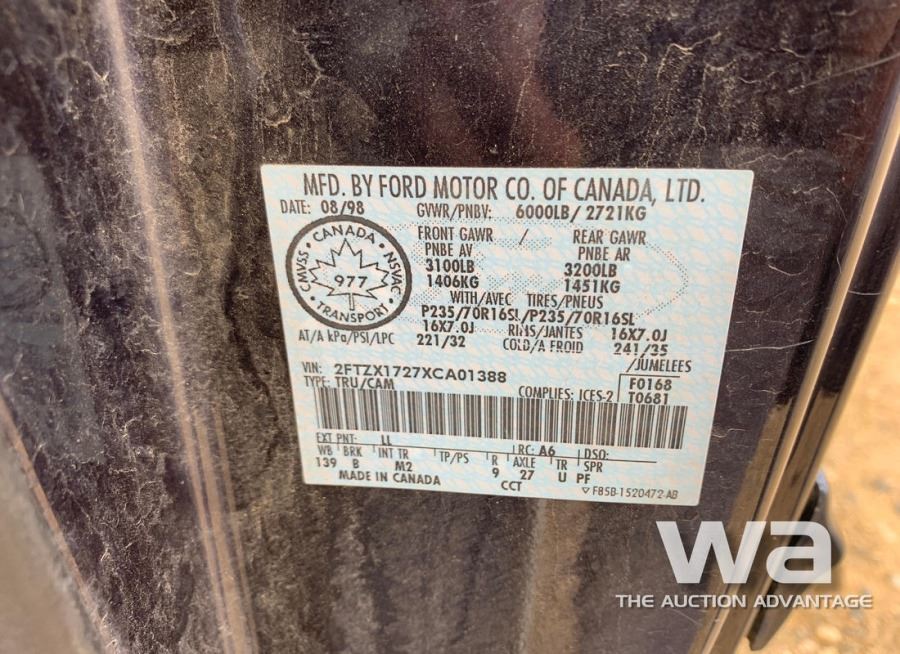 ODOMETER: 216,145 KM ENGINE: V6 TRANSMISSION: AUTOMATIC DRIVE TYPE: 2WD COLOR: BLUE VIN: 2FTZX1727XCA01388 *AB REGISTERED *KEYS:_____*
