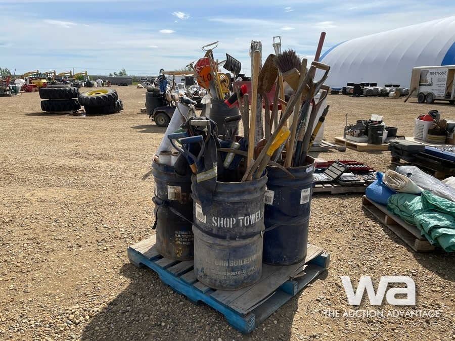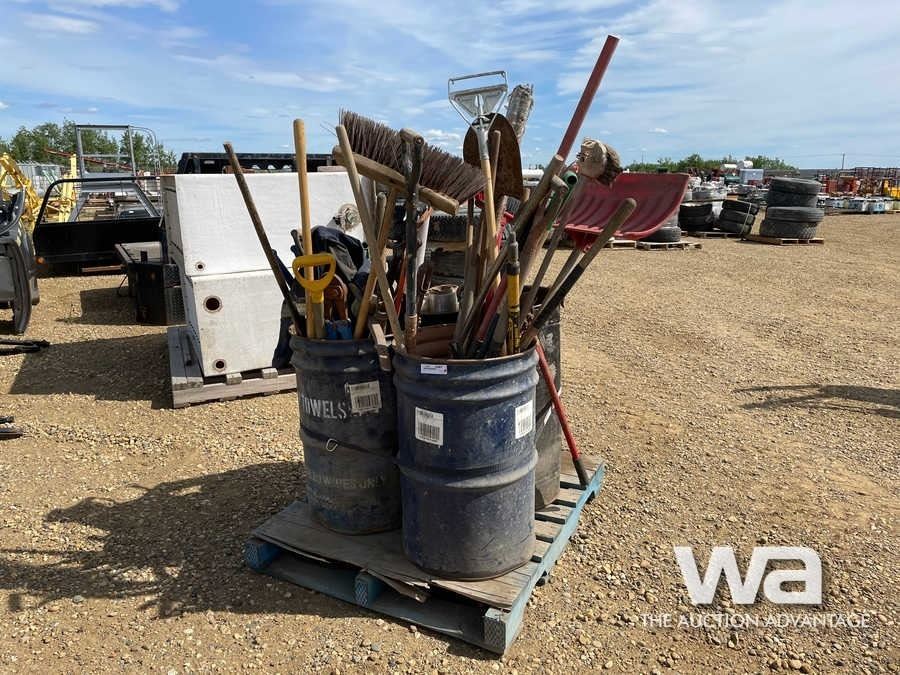 (2) BARRELS OF SHOVELS, BROOMS,CHAINS & BOOMERS