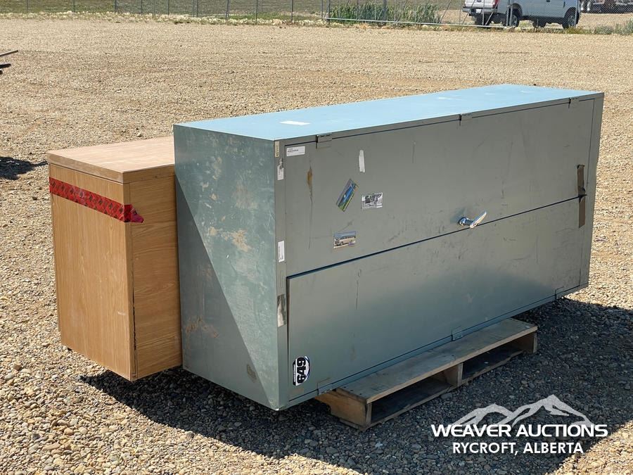 Specifications: (1) UPRIGHT 1.5 X 6 X 3 FT. CABINET (1) HORIZONTAL 2.5 X 1.5 X 6 FT. CABINET