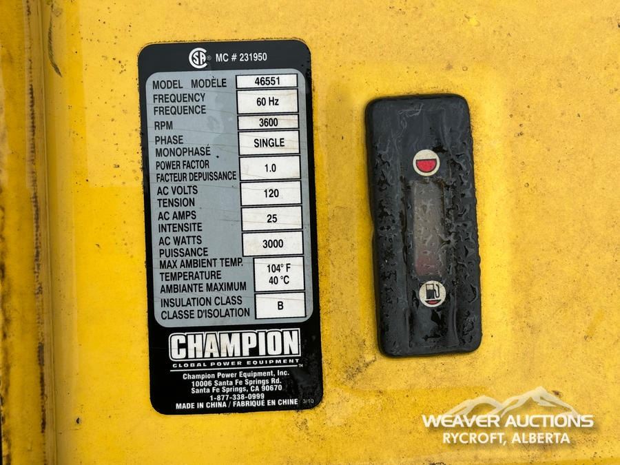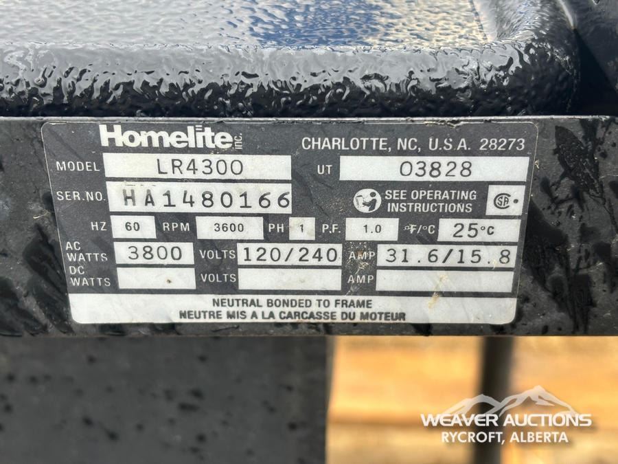 Specifications: (1) CHAMPION GENERATOR 196 CC, (1) HOMELITE LR4300 GENERATOR