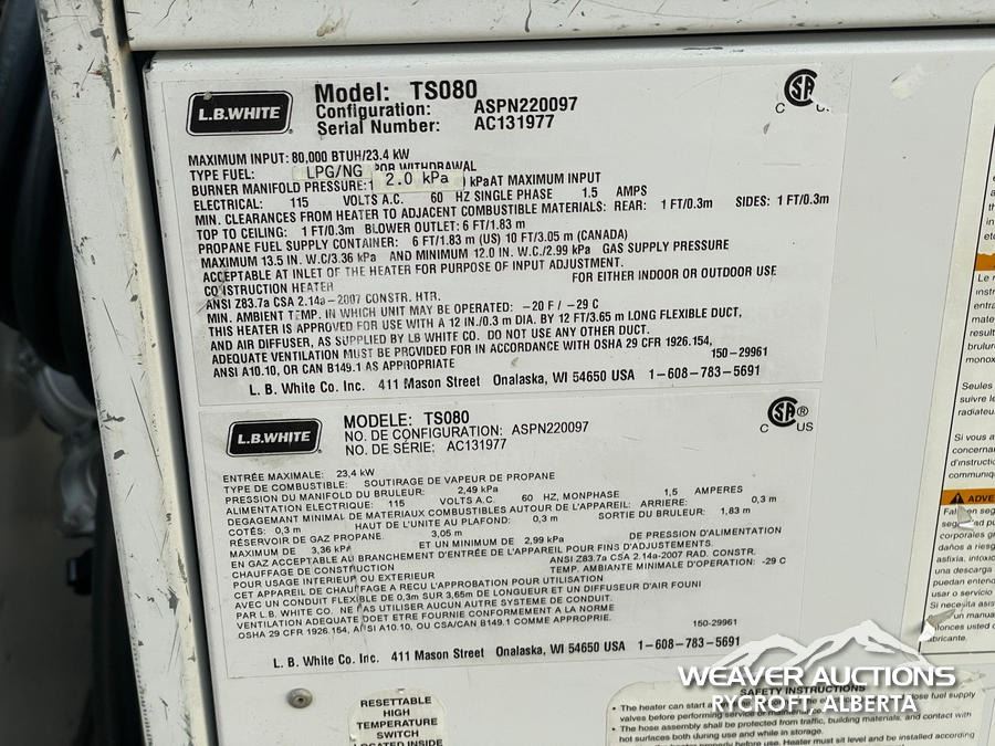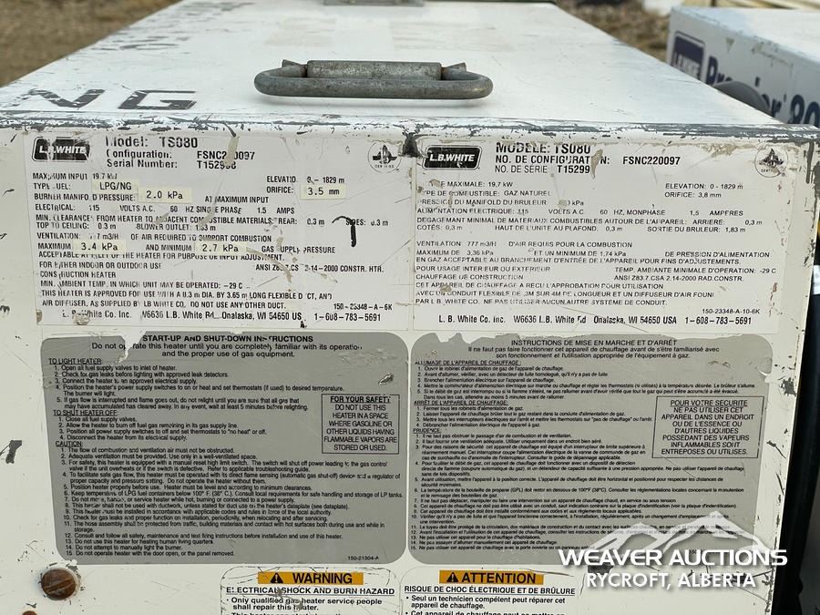 Weaver Bros. Auctions Ltd. has put forth every effort, in preparing the advertising for this auction, to provide accurate descriptions of all items. All property is sold "as-is" and it is the Bidder's responsibility to determine the exact condition of each item. All articles of merchandise are offered "as is and where is" in units of measure as announced at the time of sale.