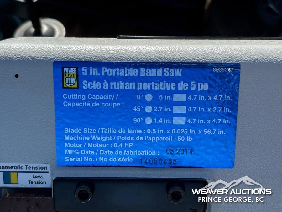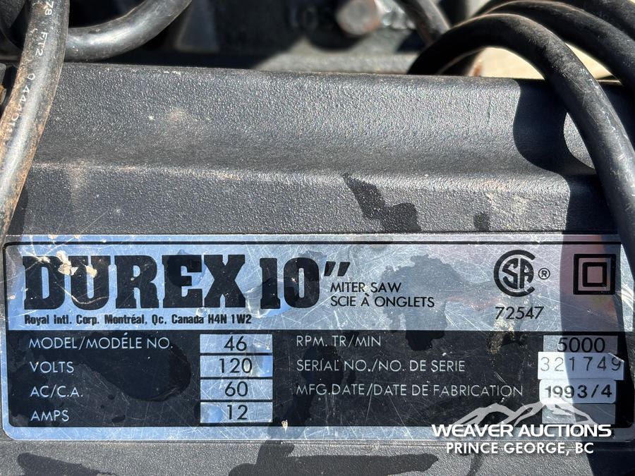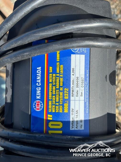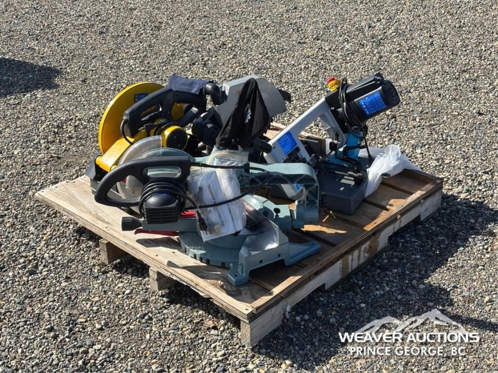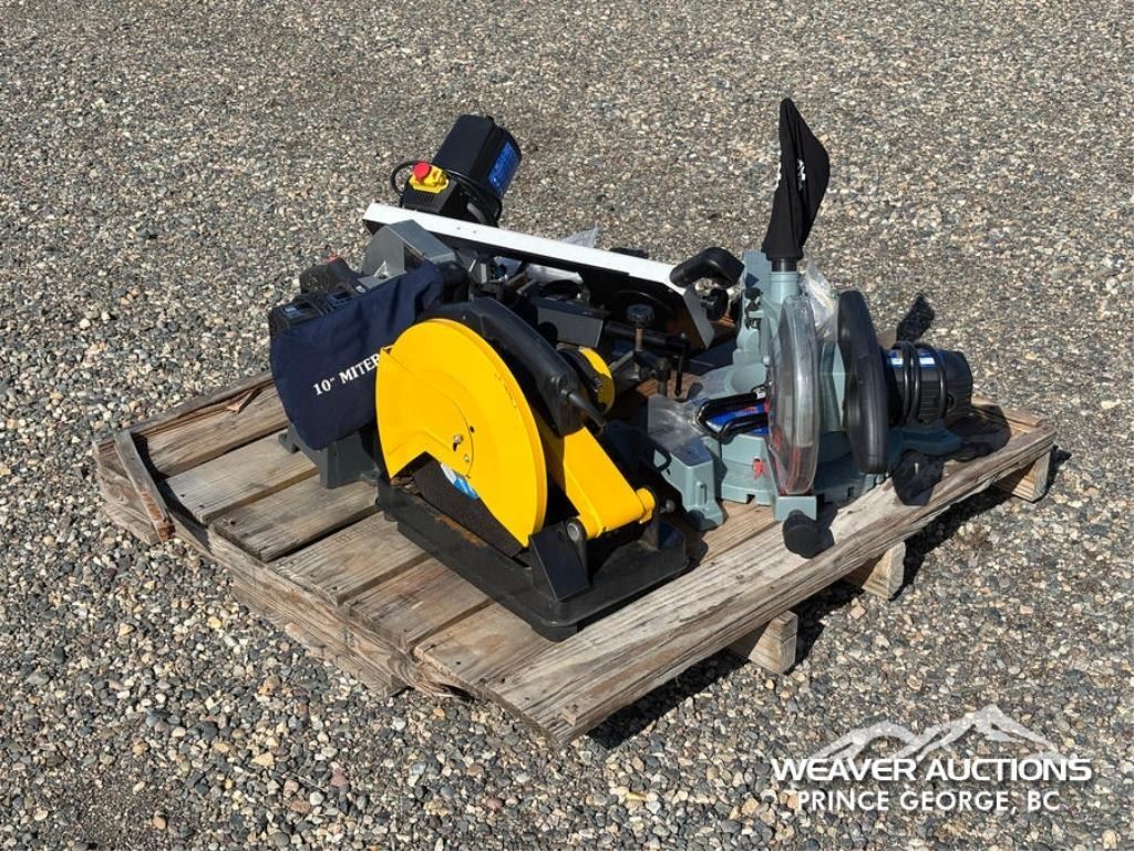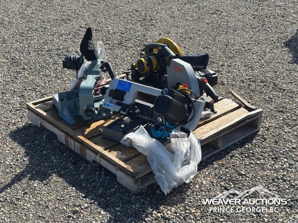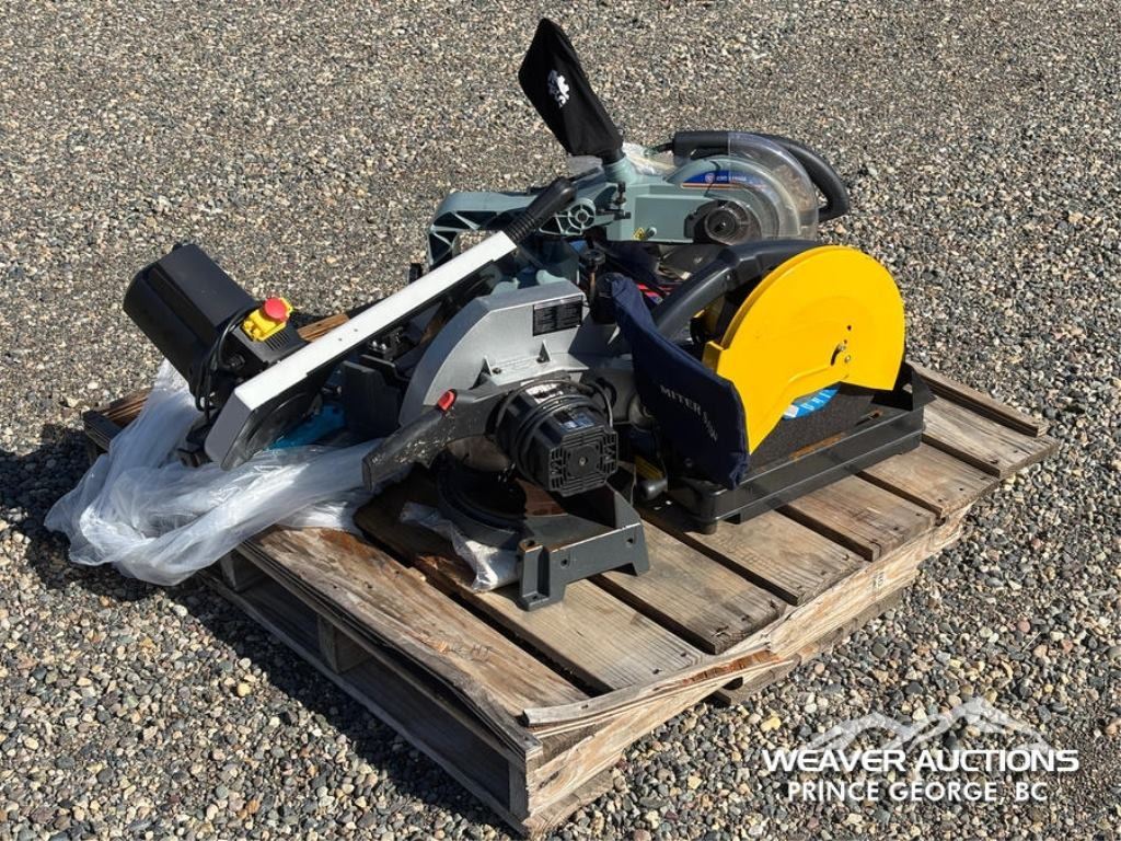 Specifications: (1) 10 IN. KING CANADA COMPOUND MITRE SAW,(1) 14 IN. POWER FIST CUT OFF SAW,(1) 5 IN. POWER FIST HORIZONTAL BAND SAW,(1) 10 IN. DUREX COMPOUND MITRE SAW