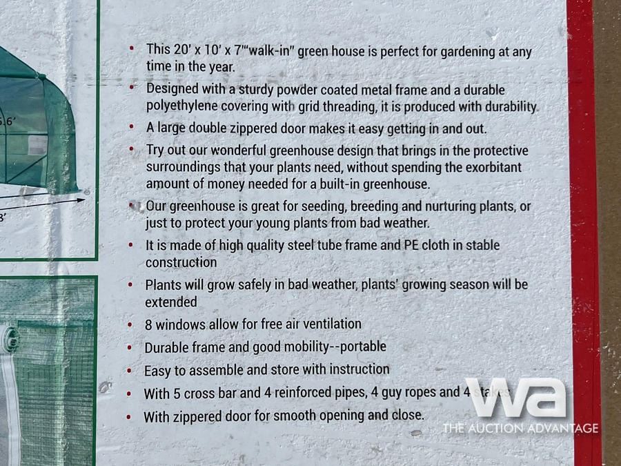 20 FT. X 10 FT. METAL FRAME WALK IN GREENHOUSE