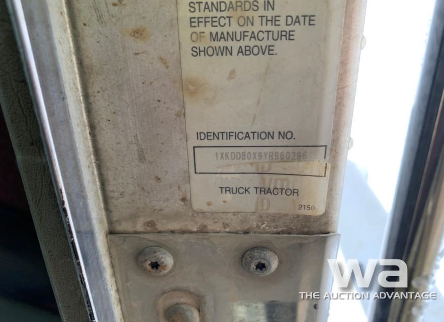 ODOMETER: 959,444 KM, METER: 28,020 HRS, CAT 3406E 475 HP, RTL018918B, DS463P, BLACK, TULSA 30 TON WINCH, 385/65R22.5 F/T, 11R24.5 R/T, ALLOY RIMS, *NEEDS REAR BUSHINGS, WINCH NEEDS AIR CYL. FOR WINCH DOGS. HAS RETARDER ENGINE BREAK, UNIT #108 VIN:1XKDDB0X9YR960296, *AB REGISTERED *CVIC INSPECTION DATE: 2019/01/10