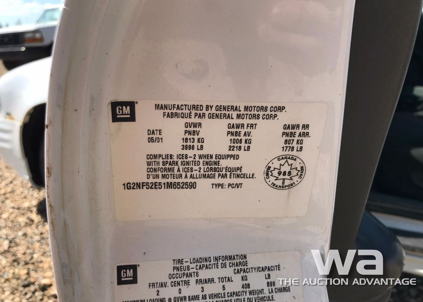 WHITE, GAS, 4-DOOR, AUTO, ODOMETER: 243,311 KM, VIN:1G2NF52E51M652590, *AB REGISTERED
