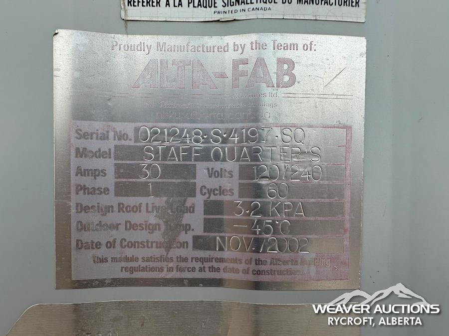 Specifications: ( 2 ) OFFICES, ( 2 ) KITCHENS, ( 2 ) BEDROOMS, BATHROOM, AIR CONDITIONER, 2 PROPANE PIGS