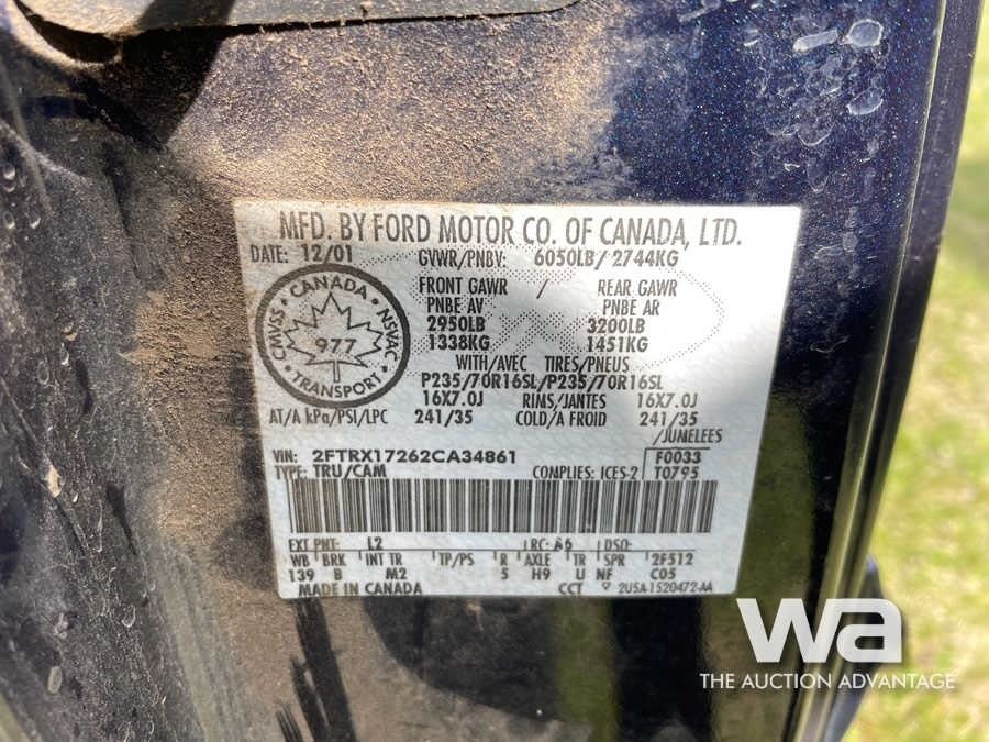 Engine: GAS Transmission: AUTOMATIC Drive Type: 2WD Color: BLUE CANOPY VIN: 2FTRX17262CA34861 *PREVIOUSLY AB REGISTERED *BILL OF SALE ONLY