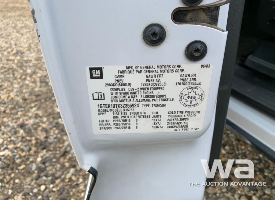 ODOMETER: 193,007 KM ENGINE: GAS TRANSMISSION: AUTOMATIC DRIVE TYPE: 4WD COLOR: WHITE/BLACK VIN: 1GTEK19TX3Z355924 *AB REGISTERED *KEYS:_____*
