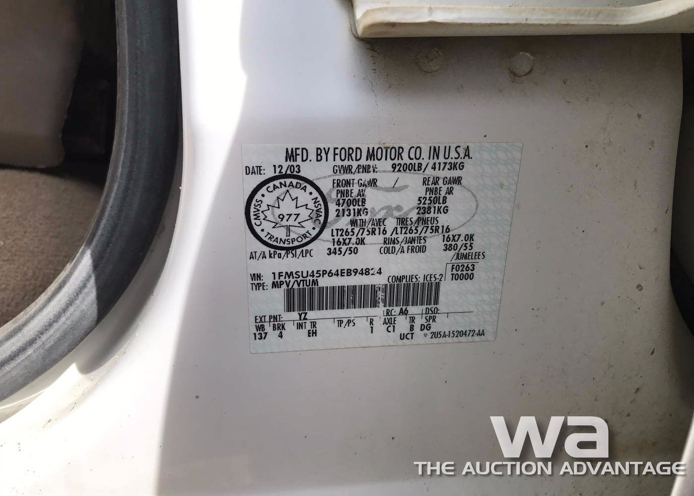 WHITE, 4WD, DSL, AUTO, LEATHER, 435,862 KM *AB REGISTERED, VIN:1FMSU45P64EB94824