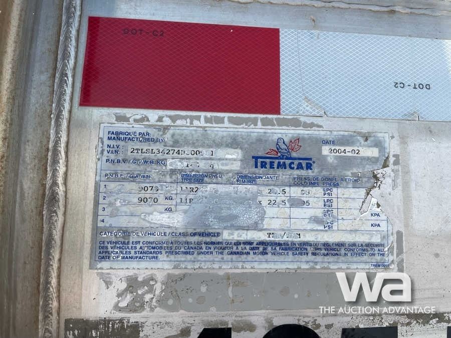 2004 TREMCAR 30,000 L QUAD AXLE TANK TRAILER