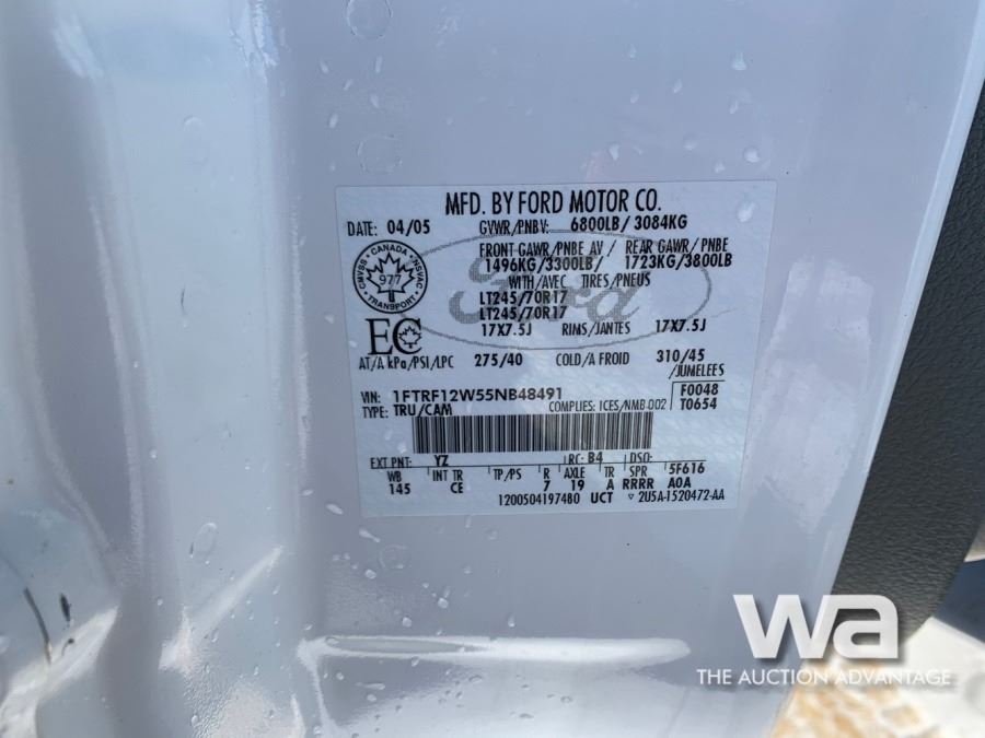 Odometer: 231,626 KM Engine: GAS Transmission: AUTOMATIC Drive Type: 2WD Color: WHITE VIN: 1FTRF12W55NB48491 *BC REGISTERED *Keys