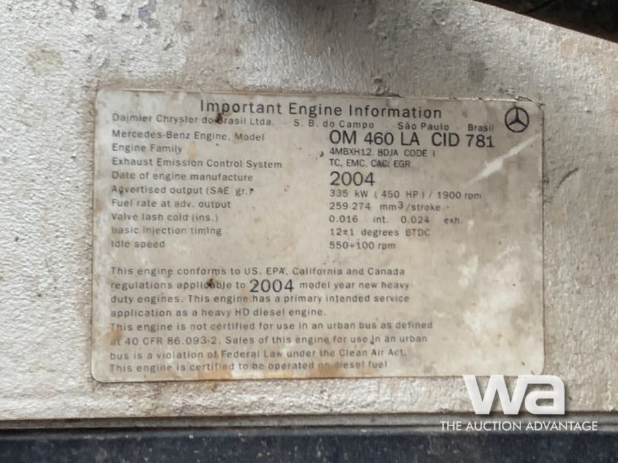 ODOMETER: 1,450,725 KM METER: 26,335 HRS ENGINE: MERCEDES 460 TRANSMISSION: 18 SPEED AXLES: 40K REARS