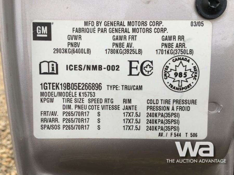 COMMAND START VIN: 1GTEK19B05E266896 *AB REGISTERED