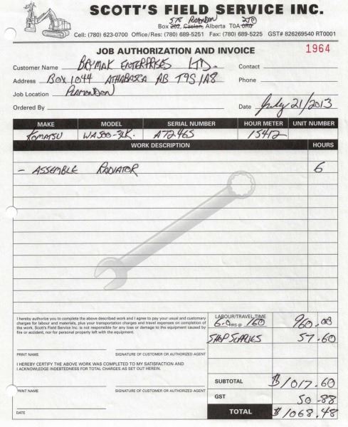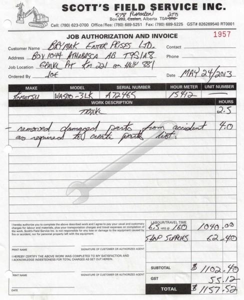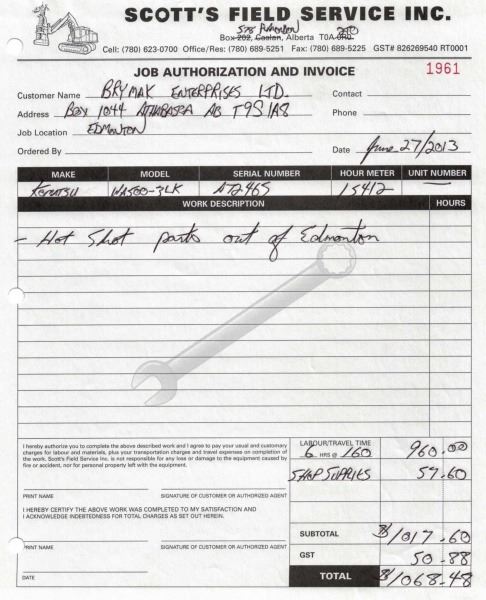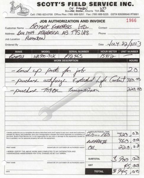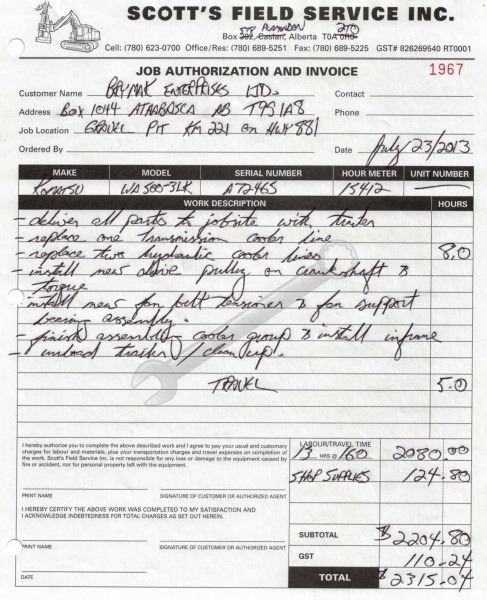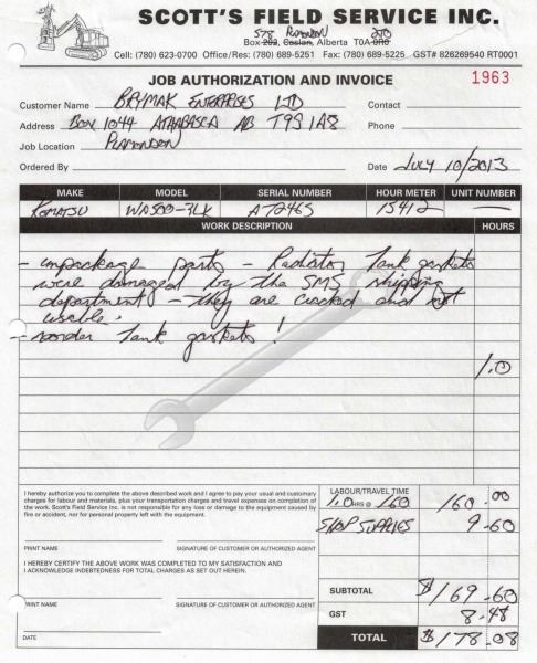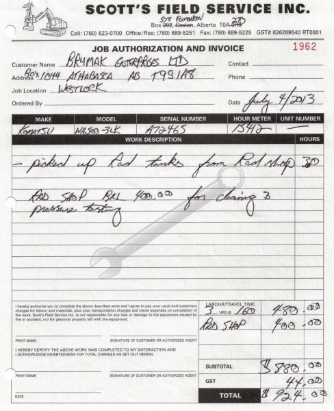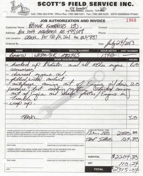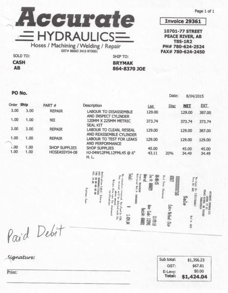 Odometer and hour meter readings are what is showing at time of listing, and may not be the actual km, or hours on the equipment.