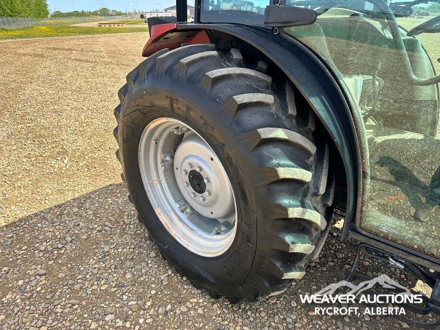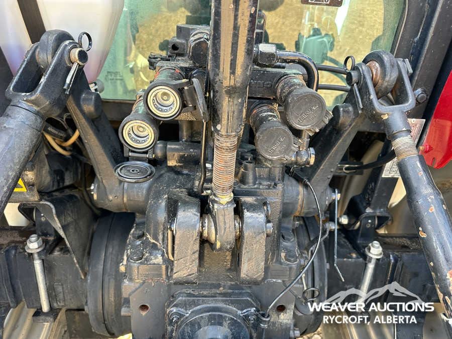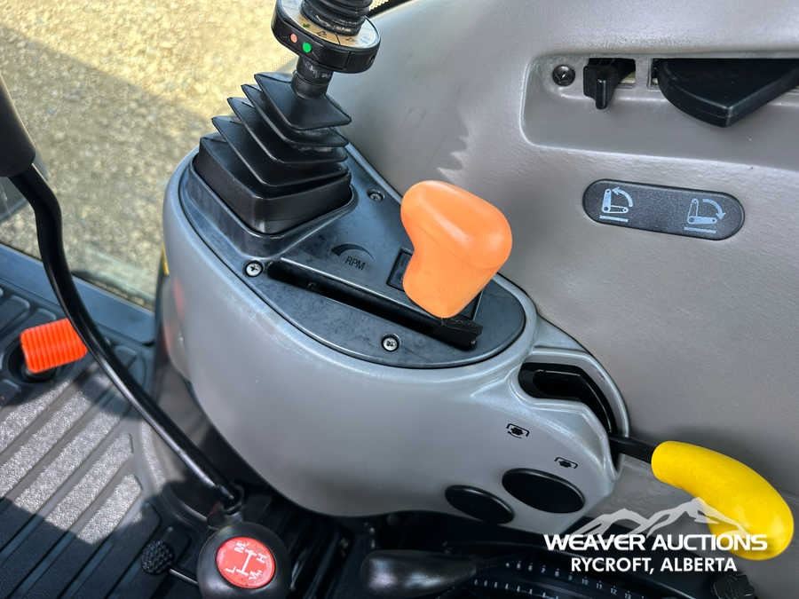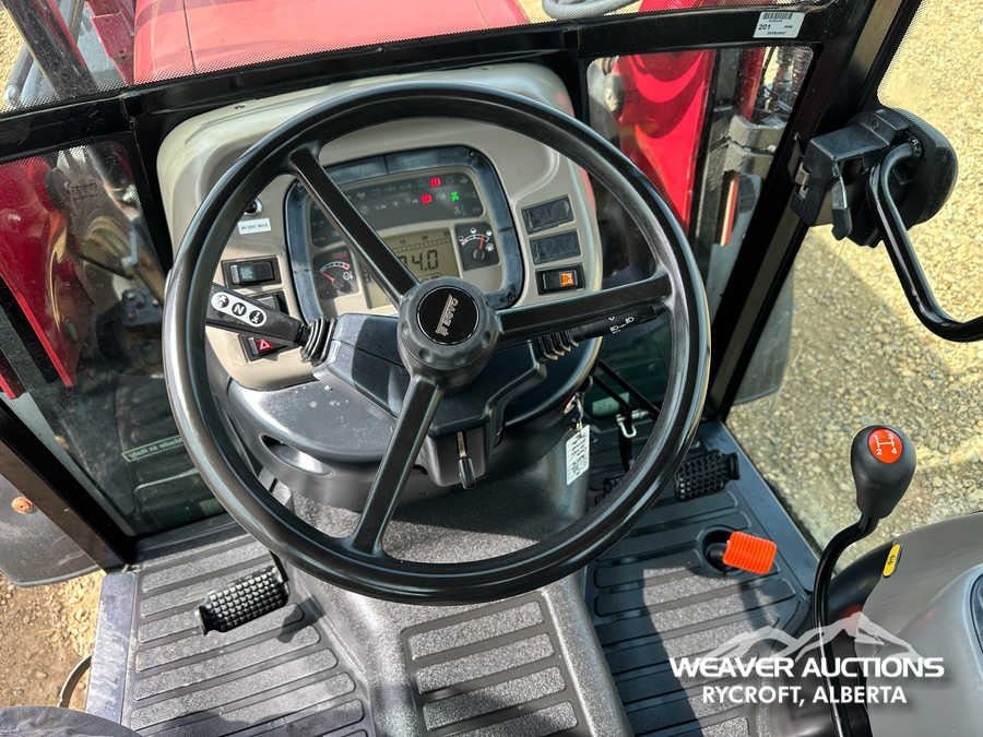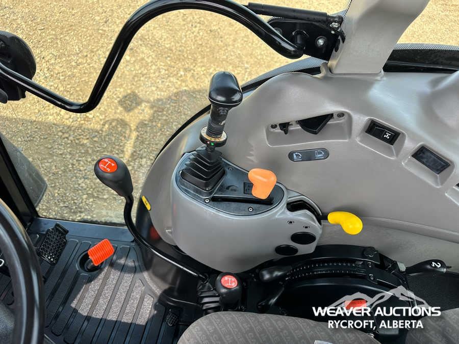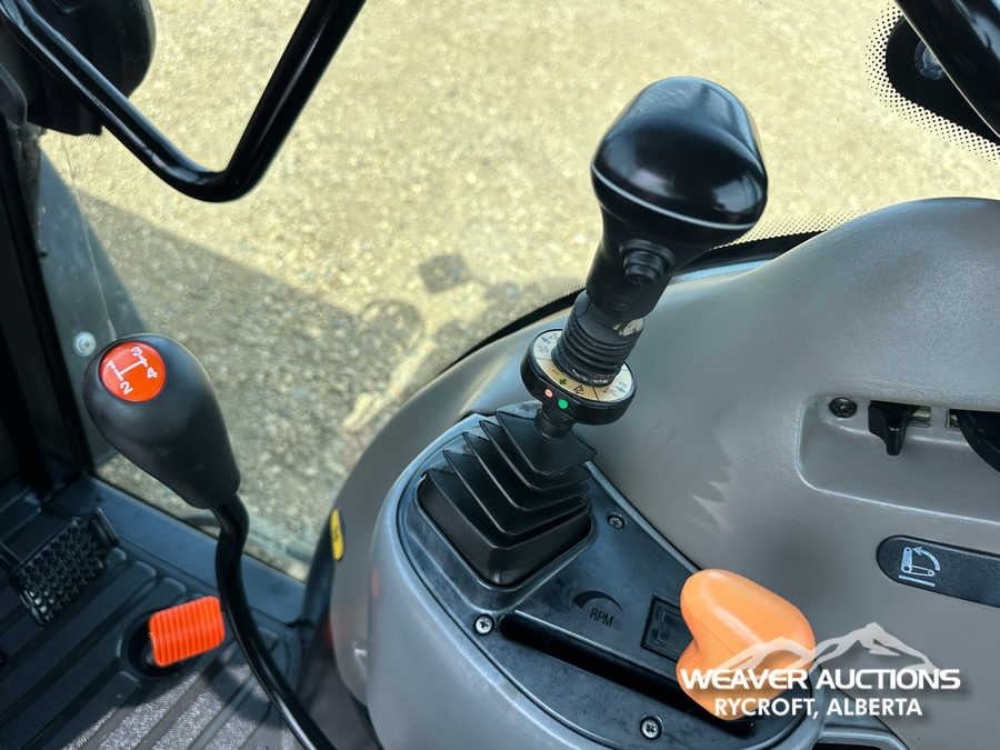Specifications: ENCLOSED CAB, AIR CONDITIONER, DIFFERENTIAL LOCK, , PARTIAL POWER SHIFT, l720 LOADER W/JOYSTICK, QUICK COUPLER, 2 MID-MOUNT REMOTES, 2 REAR REMOTES, EXTERIOR 3-POINT HITCH CONTROLS, 540 PTO, 3-POINT HITCH, DRAWBAR