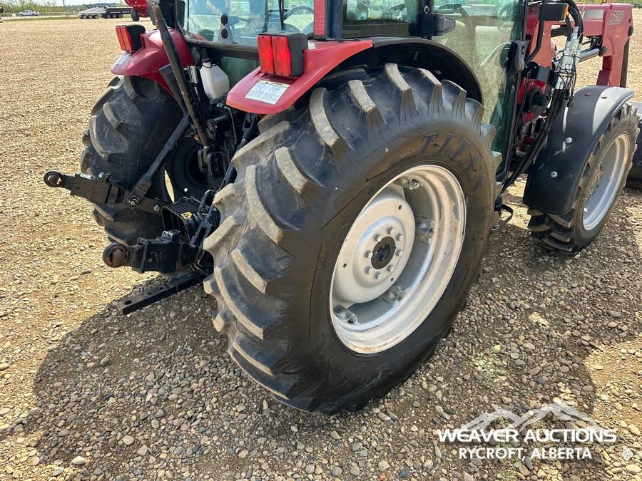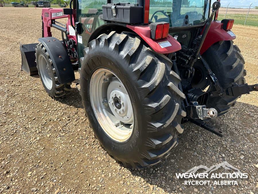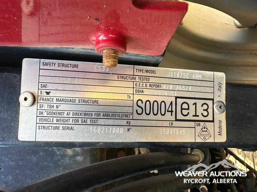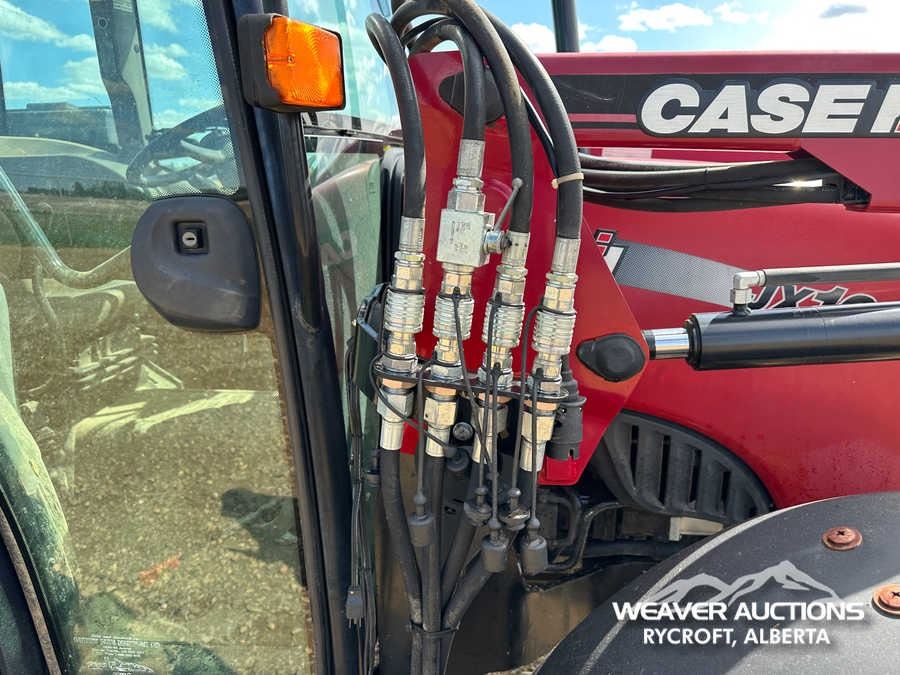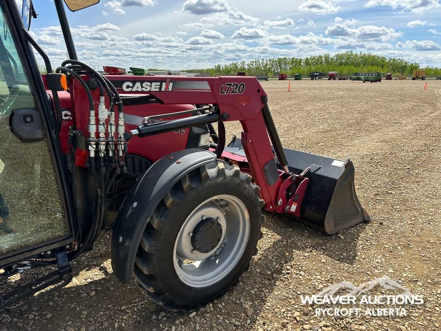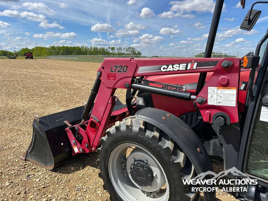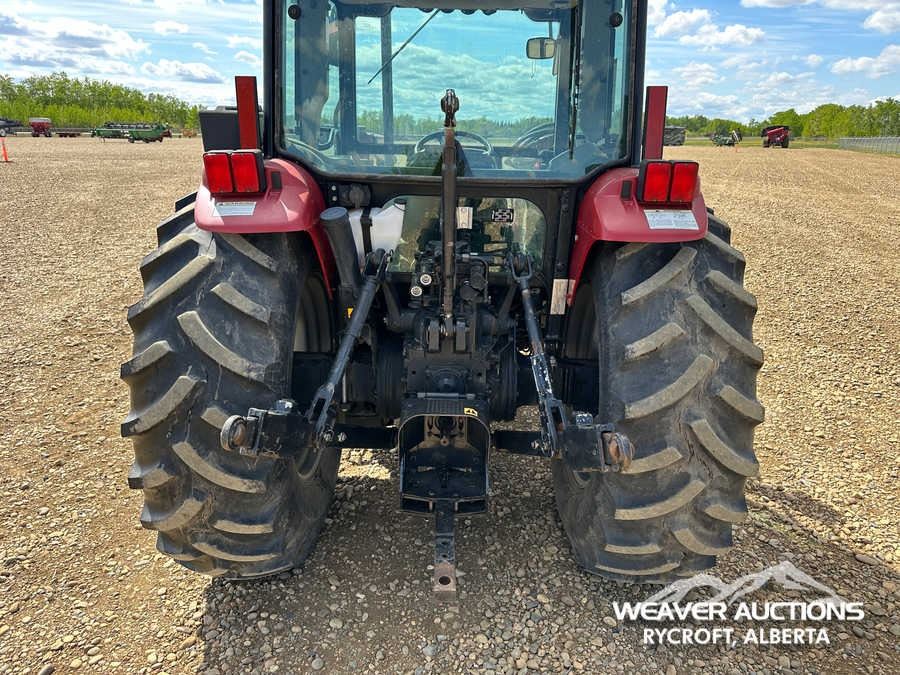 Specifications: ENCLOSED CAB, AIR CONDITIONER, DIFFERENTIAL LOCK, , PARTIAL POWER SHIFT, l720 LOADER W/JOYSTICK, QUICK COUPLER, 2 MID-MOUNT REMOTES, 2 REAR REMOTES, EXTERIOR 3-POINT HITCH CONTROLS, 540 PTO, 3-POINT HITCH, DRAWBAR