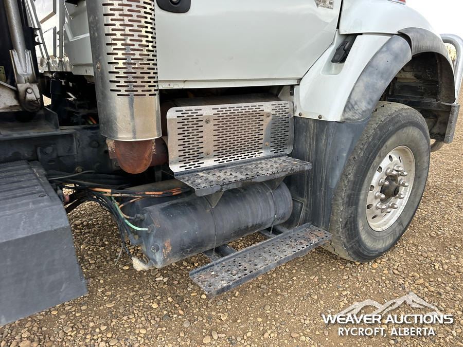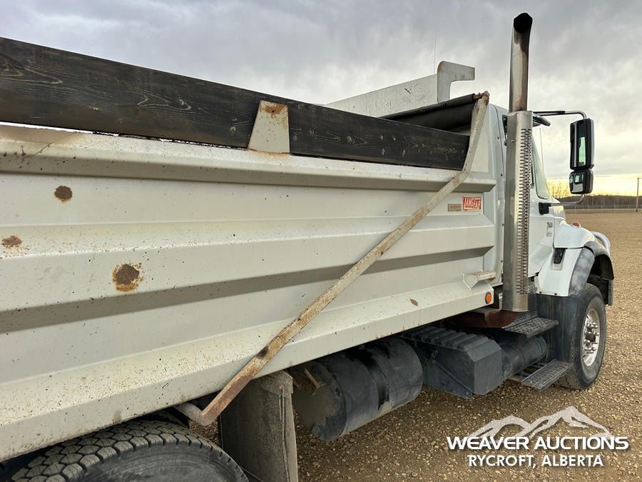 Specifications: CAT C13 DIESEL ENGINE, EATON FULLER MANUAL TRANSMISSION, AIR RIDE CAB, 11R22.5, AIR RIDE SUSPENSION, PTO, LANGFAB 16 FT. STEEL BODY, HIGHLIFT TAILGATE, ELECTRIC ROLL TARP, REAR HYDRAULICS, PINTLE HITCH