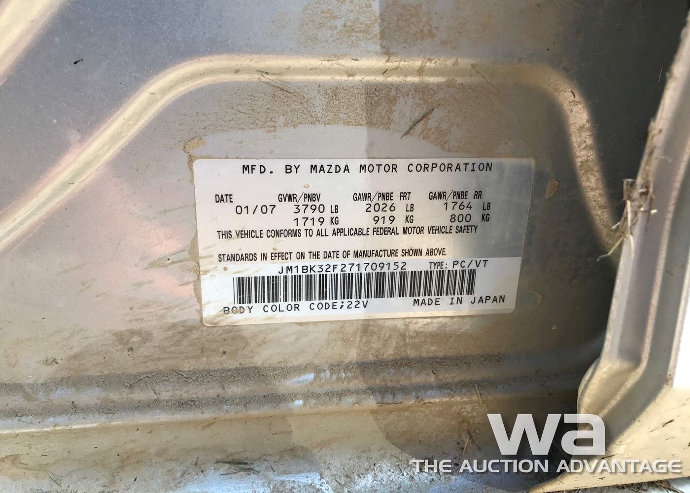 4-DOOR, SILVER, GAS, STANDARD, 200,443 KM, VIN:JM1BK32F271709152, *AB REGISTERED