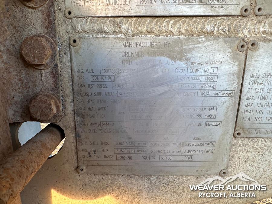 2008 BRENNER 37,194 L INSULATED TRI/A TANK TRAILER
