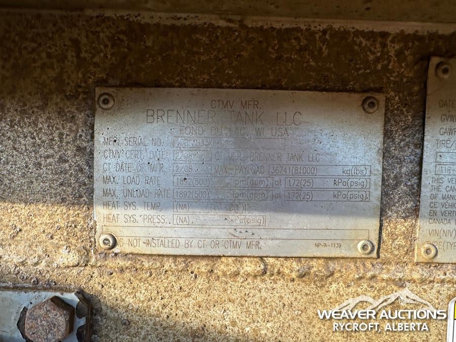 2008 BRENNER 42,014 L INSULATED TRI/A TANK TRAILER