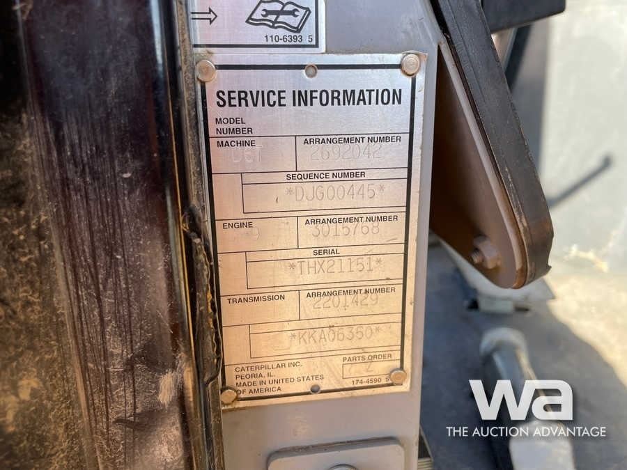 Meter: 15,380 HRS ENCLOSED CAB, POWERSHIFT TRANS W/DIFF STEER, CAB GUARDS, SWEEPS, 6-WAY DOZER, SNGL BBL MS RIPPER SN: CAT00D6TTDJG00445 *WORK ORDERS IN OFFICE *Keys