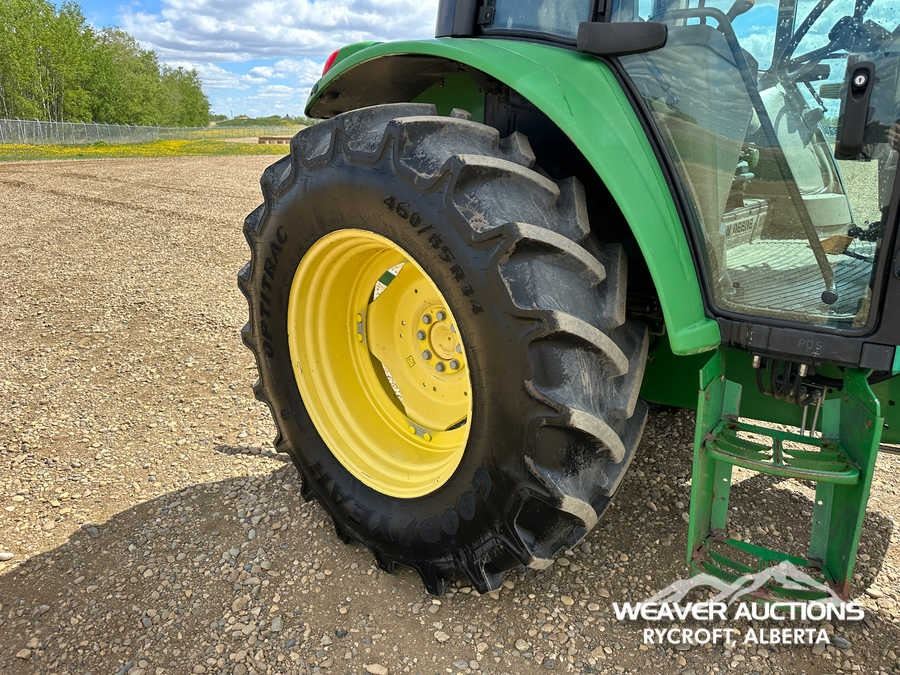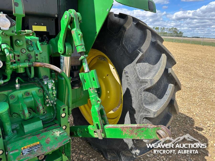 Specifications: ENCLOSED CAB, AIR CONDITIONER, DIFFERENTIAL LOCK, FORWARD/ REVERSE SHUTTLE, 2 REAR REMOTES, 540/1000 PTO, 3-POINT HITCH, 10.00-16 FRONT TIRES, 460/85R34 REAR TIRES
