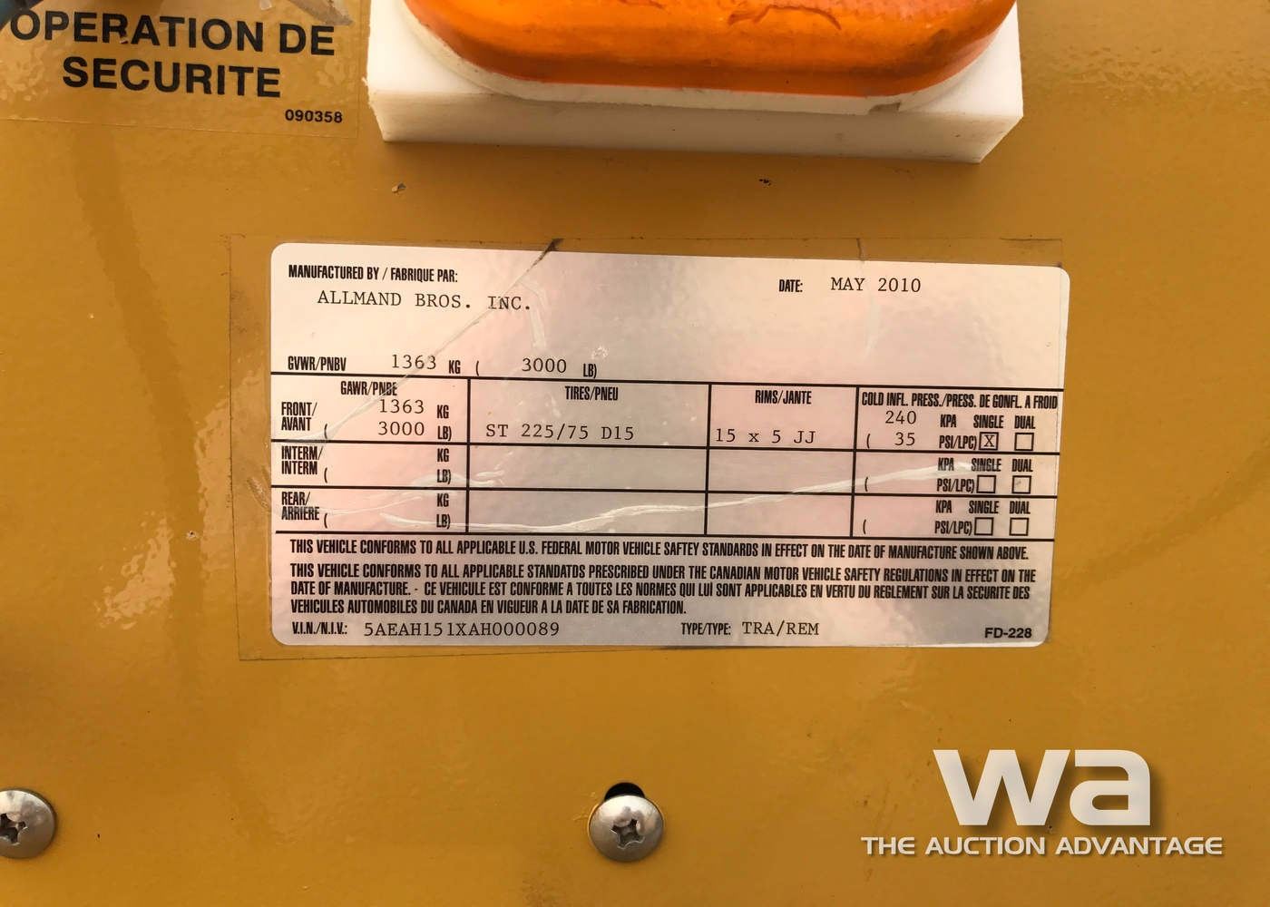 W/ TWO 765 LITRE FUEL TANKS, HOUR METER: 9,362 HRS, SN:5AEAH151XAH000089, SN:0062MLV10, T/A TRAILER, VIN:2P9UT32913P078903, *NO REGISTRATION PROVIDED, *BILL OF SALE ONLY