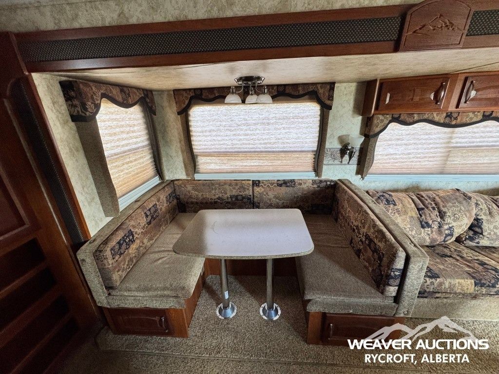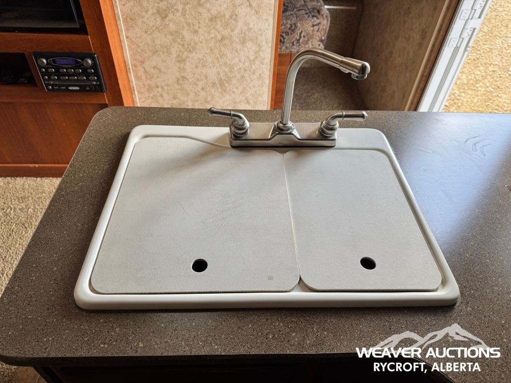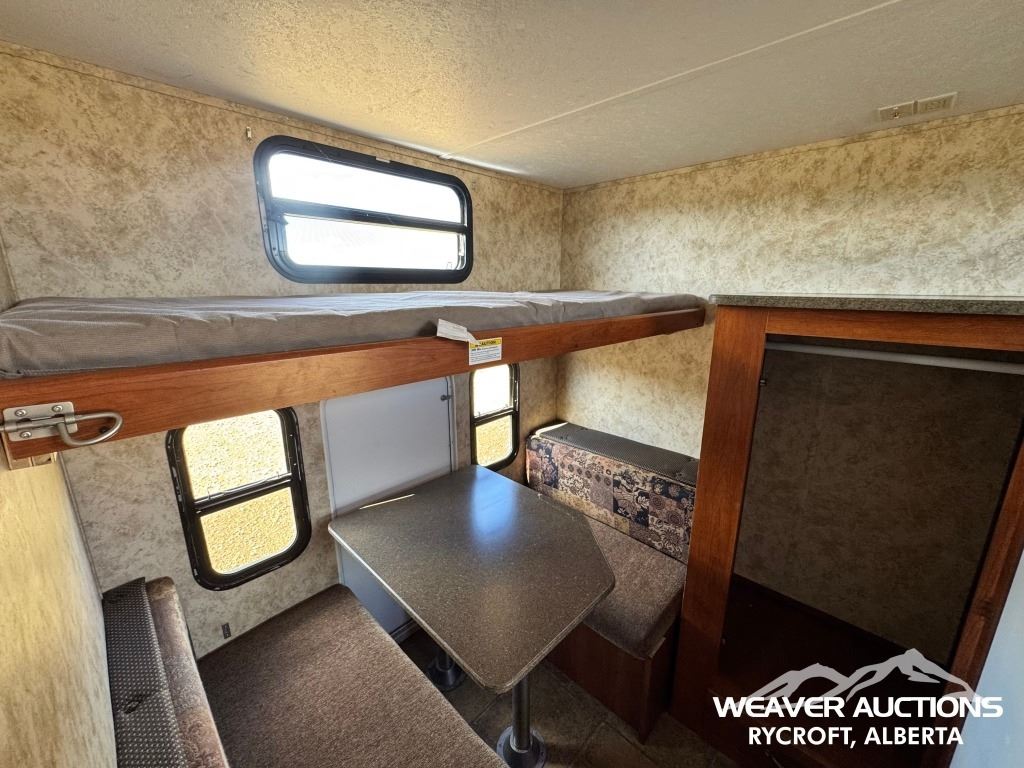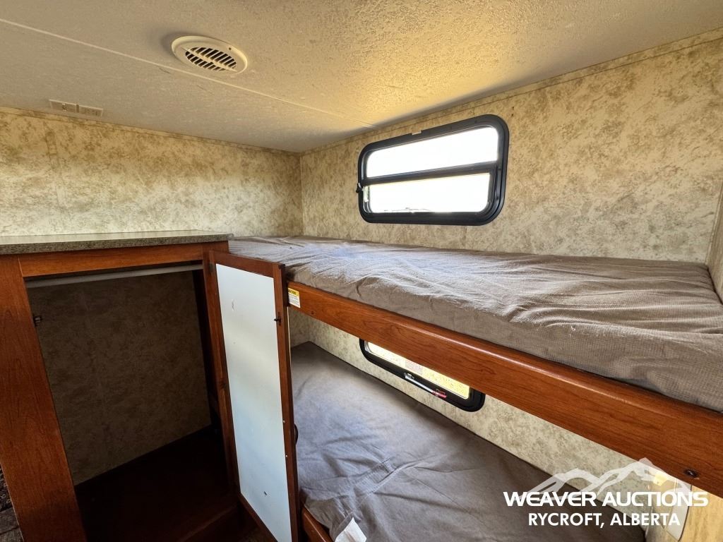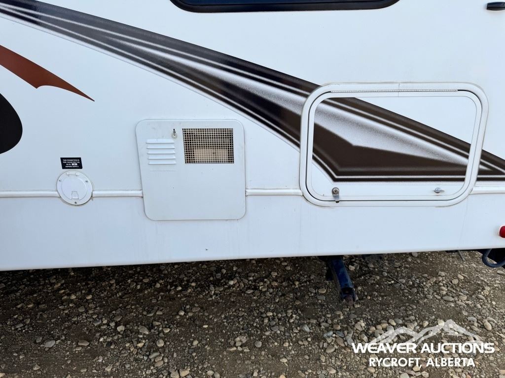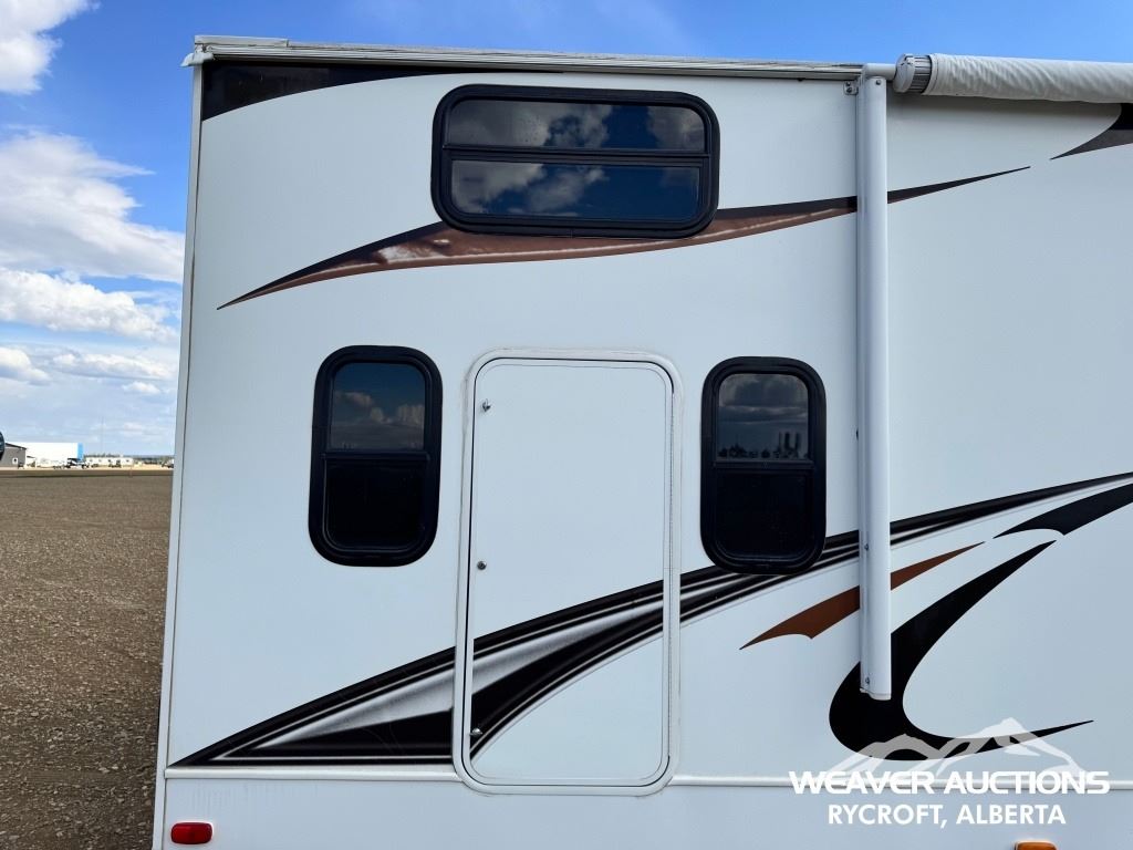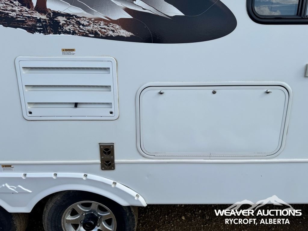 Specifications: (1) SLIDE, SLEEPS UP TO 9, FRIDGE, STOVE, OVEN, MICROWAVE, 3 BUNKS, A/C, HEATER, ELECTRIC AWNING C/W FOB, OUTDOOR KITCHEN, C/W MANUALS, C/W NEW FENDER FLARES IN FRONT COMPARTMENT