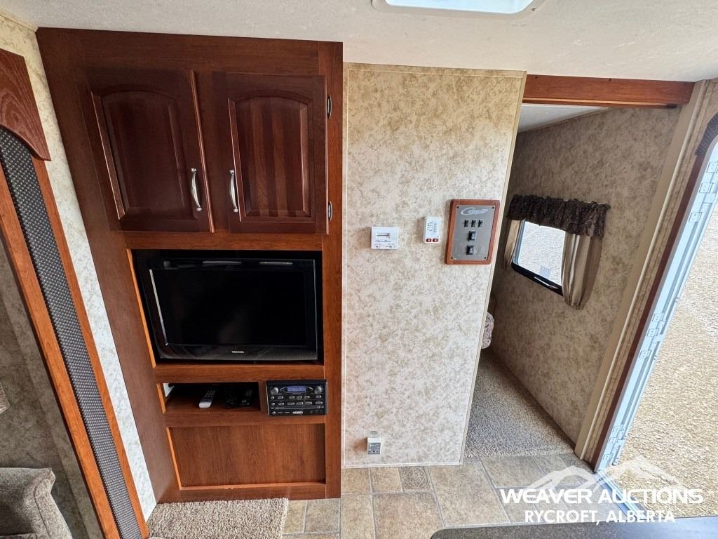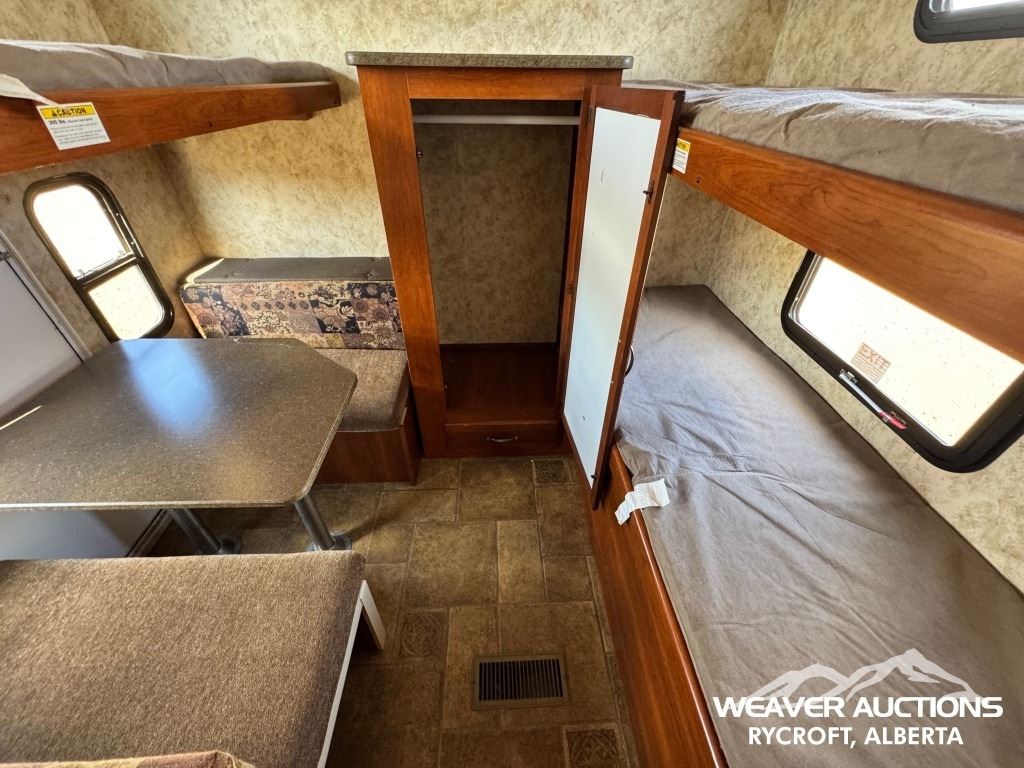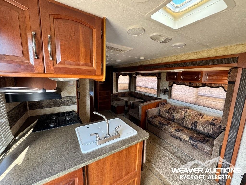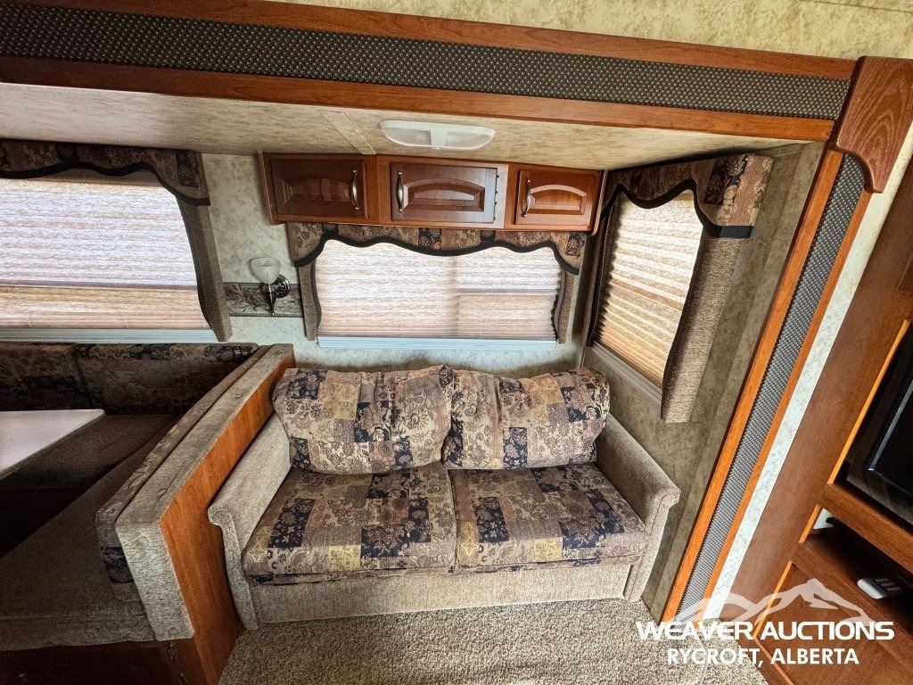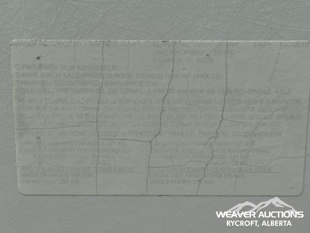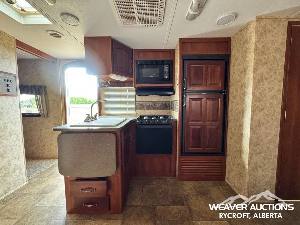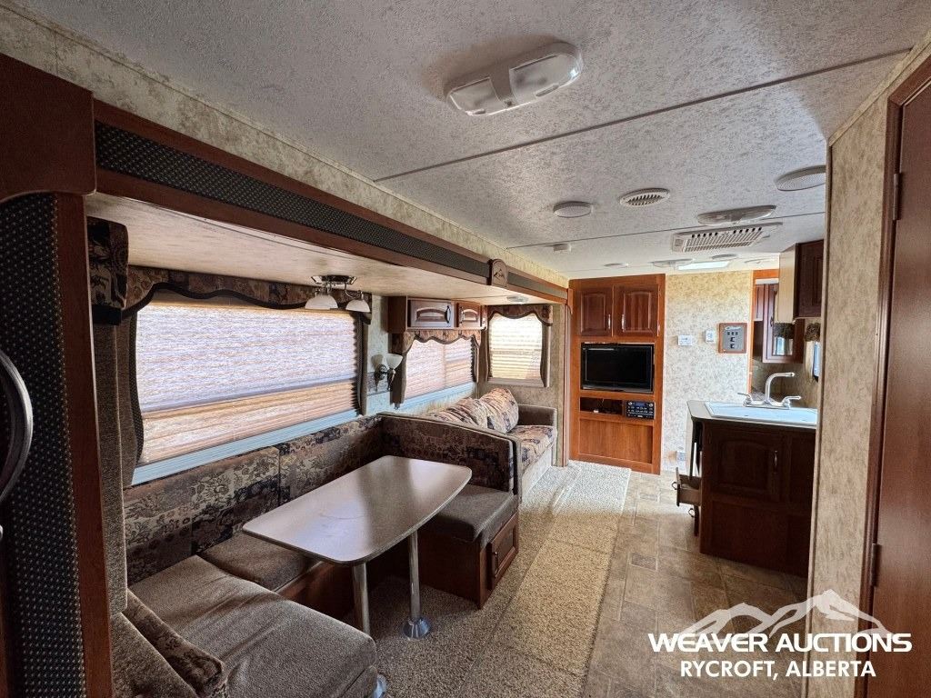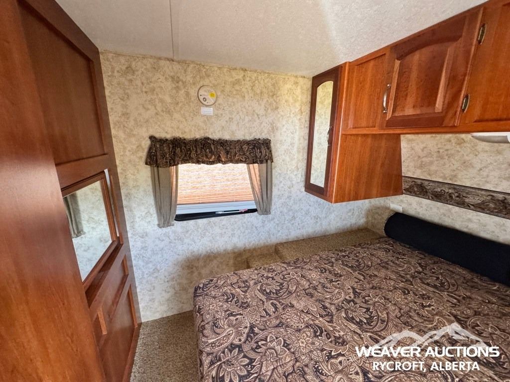 Specifications: (1) SLIDE, SLEEPS UP TO 9, FRIDGE, STOVE, OVEN, MICROWAVE, 3 BUNKS, A/C, HEATER, ELECTRIC AWNING C/W FOB, OUTDOOR KITCHEN, C/W MANUALS, C/W NEW FENDER FLARES IN FRONT COMPARTMENT