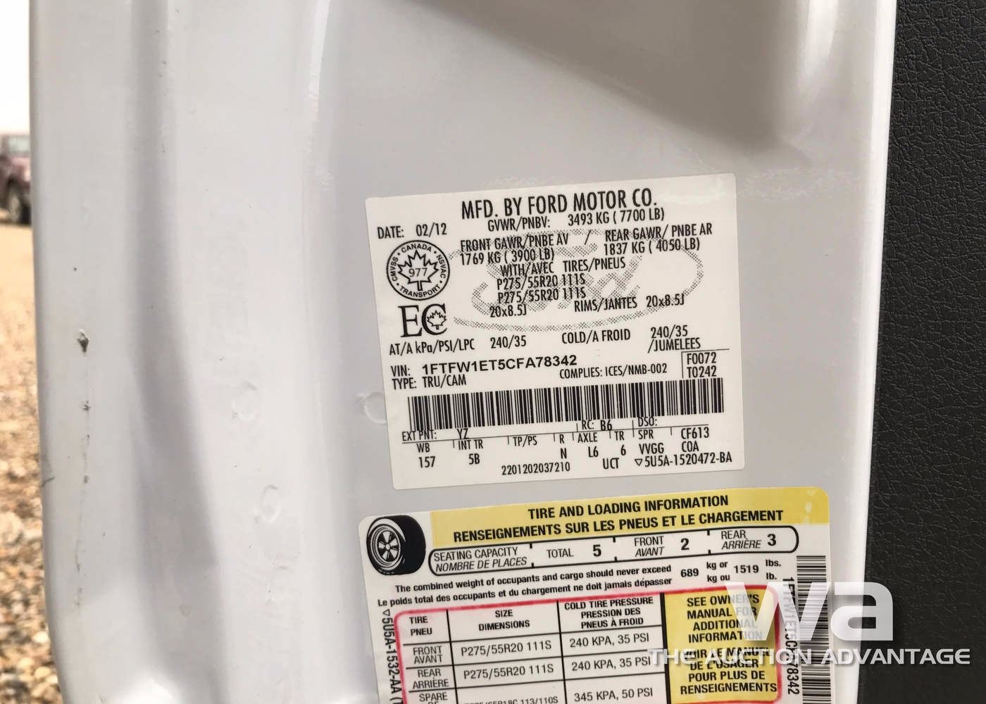 WHITE, 4WD, 6 SPEED AUTO, 3.51 V6 ECOBOOST, 3.73 DIFFERENTIAL, HEATED/COOLED LEATHER BUCKET SEATS, SIRIUS SATELLITE RADIO, GPS NAVIGATION, 6.5 FT. BOX, FX4 PKG, MAX TRAILER TOW PKG, VIN:1FTFW1ET5CFA78342, *AB REGISTERED