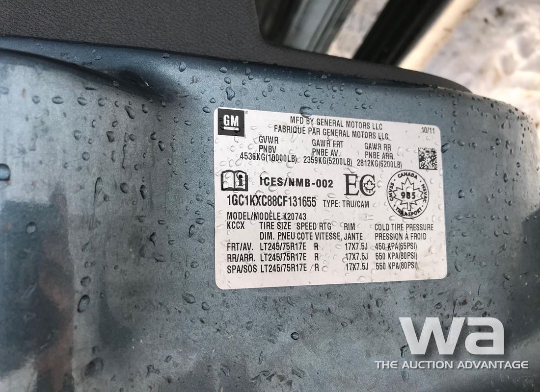 ODOMETER: 198,335 KM, BLUE, CREW CAB, DURAMAX DSL, AUTO, 4WD, CLOTH INTERIOR, BENCH SEAT, HERD ALUM. BUMPER, ALUM. HEADACHE RACK18" TIRES, VIN:1GC1KXC88CF131655, UNIT #105, *AB REGISTERED, *WORK ORDERS