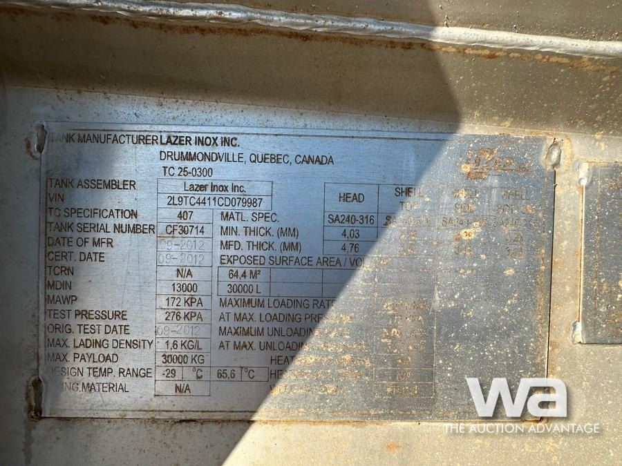 2012 LAZER INOX 32,000 L QUAD AXLE TANK TRAILER