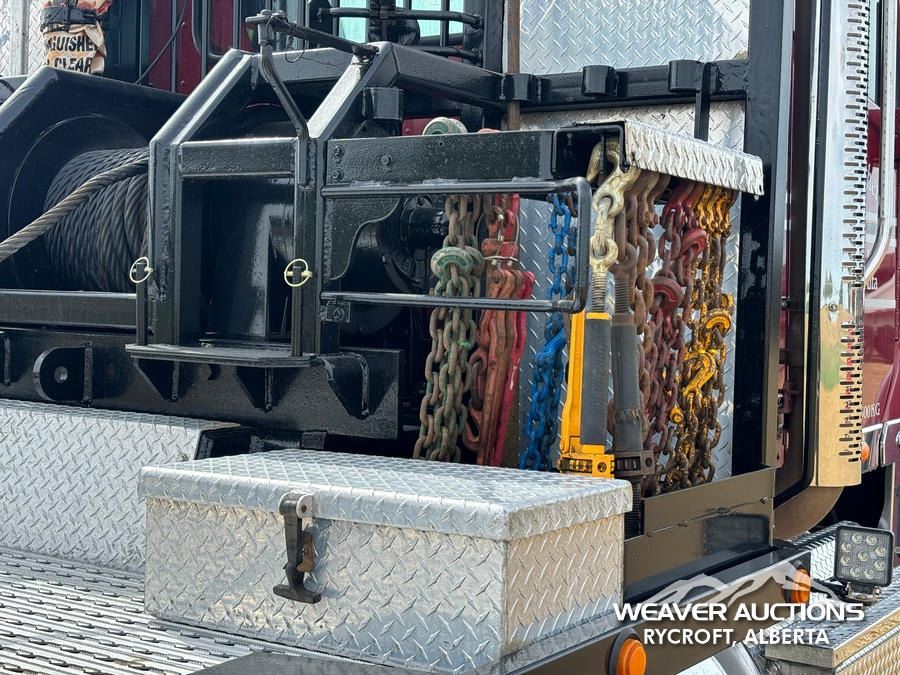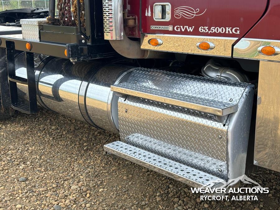 Specifications: DETROIT DD15 ENGINE, 560 HP ENGINE BRAKE, EATON FULLER RTLO18918B 18 SPEED TRANSMISSION, DOUBLE DIFF LOCK, 14,320 LB FRONT, RT-46-164P REAR, 3.91 RATIO, 240 IN WB, RUFFNEK RN60P-HRX0A2 WINCH, AIR RIDE SUSPENSION, LOWBOY RAMP, SLIDING FIFTH WHEEL *MAJOR ENGINE WORK AT 152,402 KM
