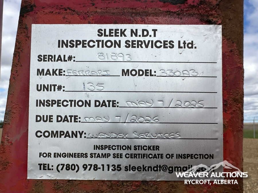 Specifications: TOOL CABINETS, FERRARI 330 CORNER PICKER, HYDRAULIC STABILIZERS, DOWN RIGGERS